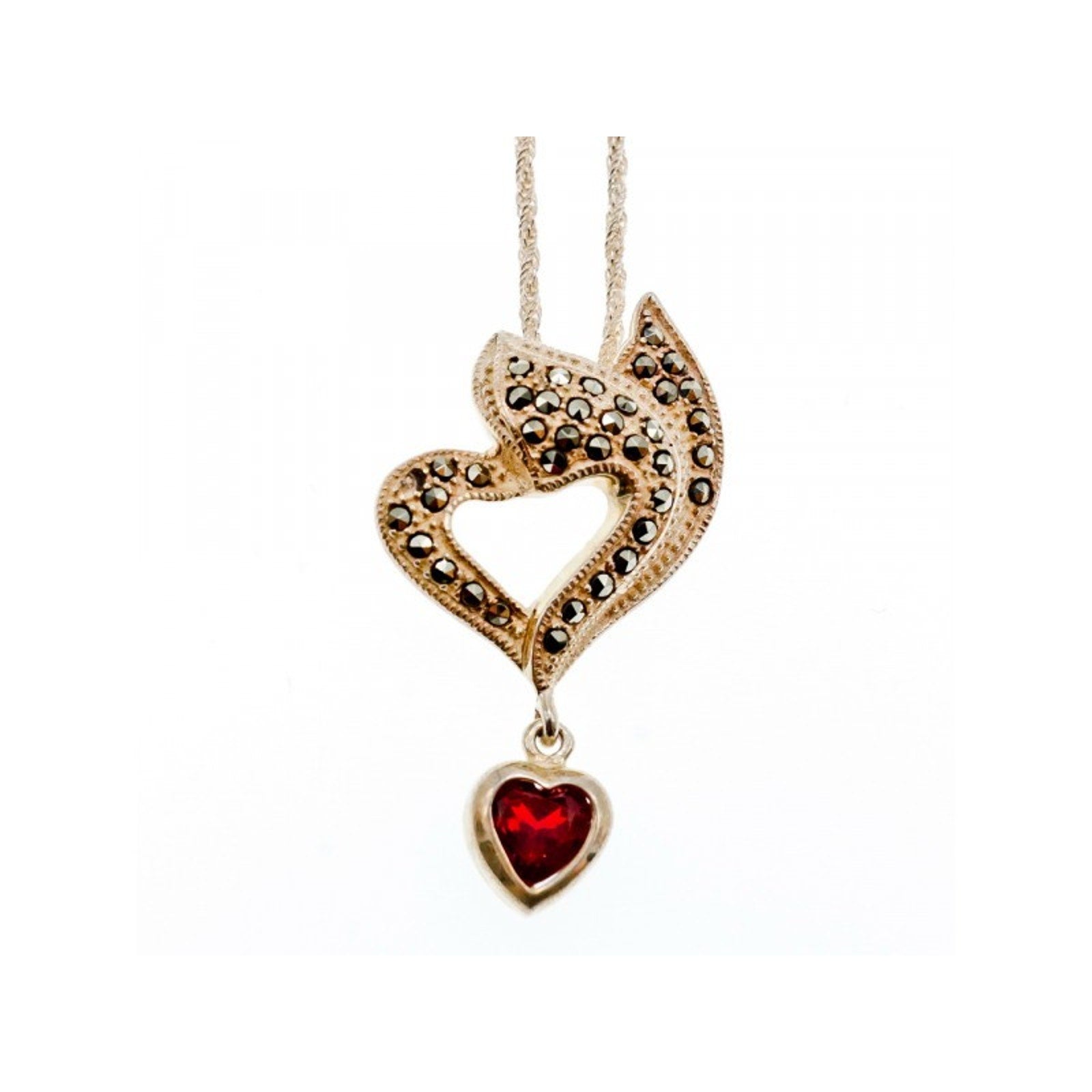 925 Sterling Silver Almandine & Marcasites Chain with Pendant