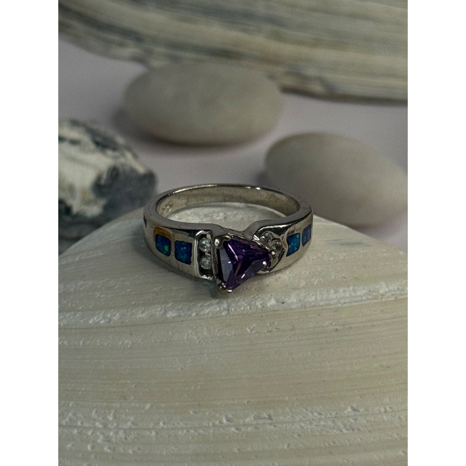 925 Sterling Silver Amethyst & Beryl & Opal Ring Size 6.5