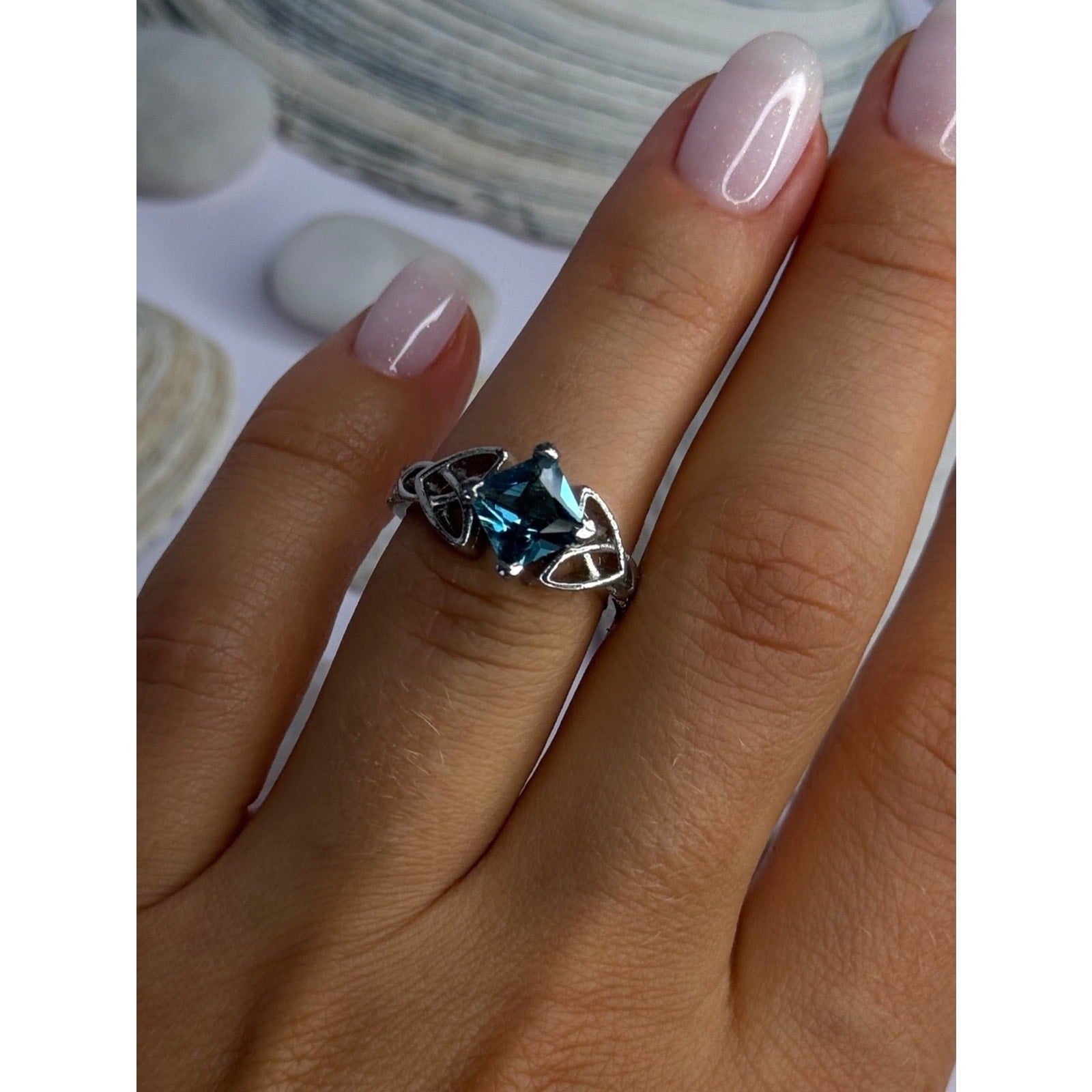925 Sterling Silver Aquamarine Ring Size 6