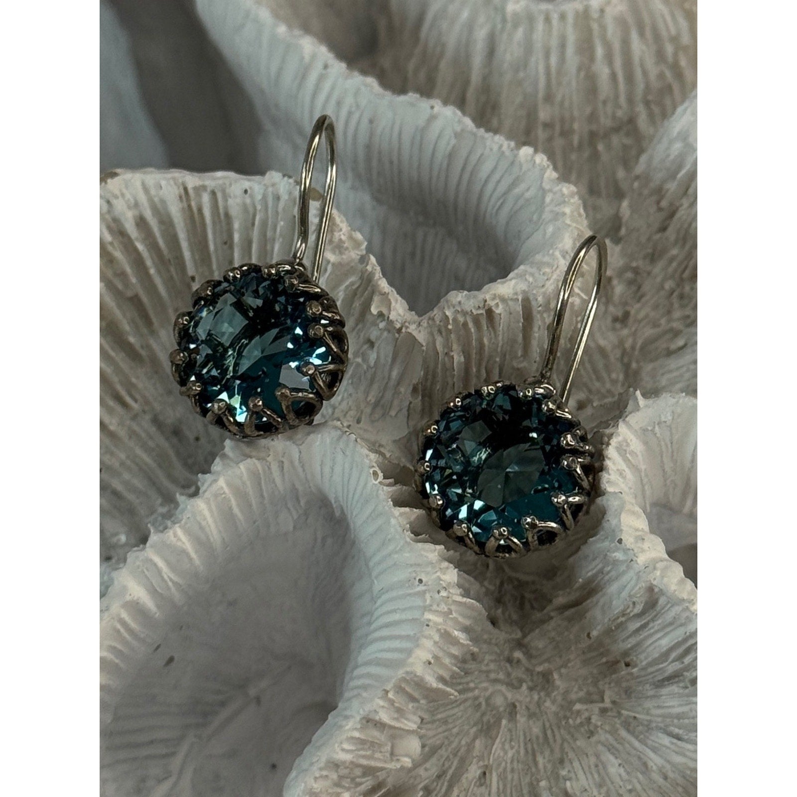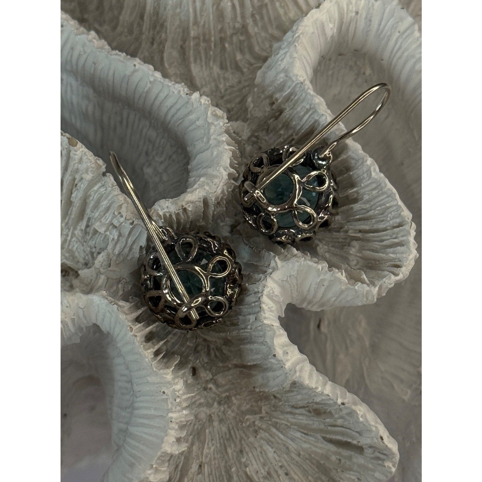 925 STERLING SILVER BLUE TOURMALINE EARRINGS LENGTH 1 INCH