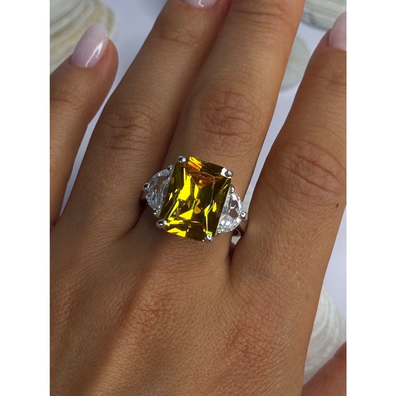 925 Sterling Silver Citrine & Beryl Ring Size 11