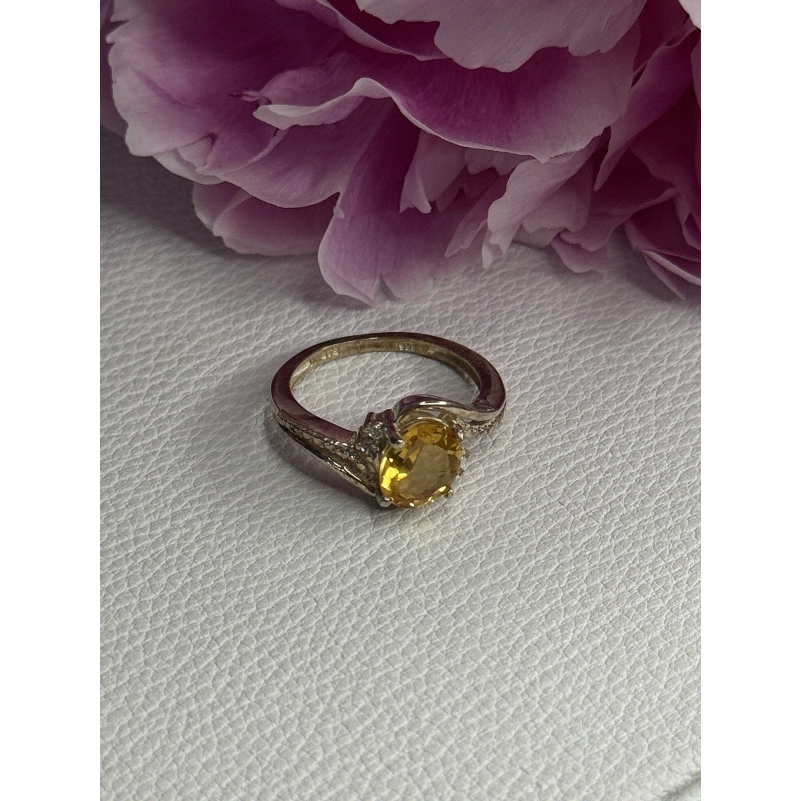 925 STERLING SILVER CITRINE & BERYL RING SIZE 7