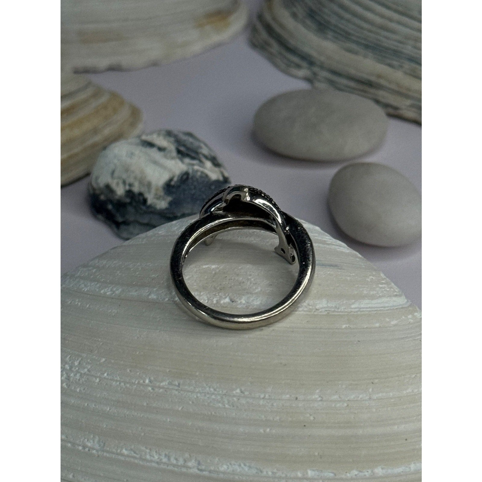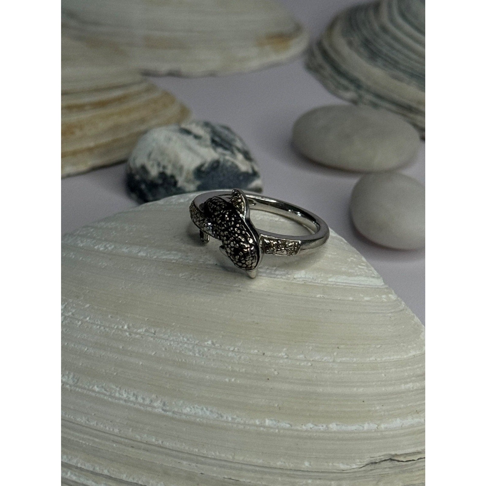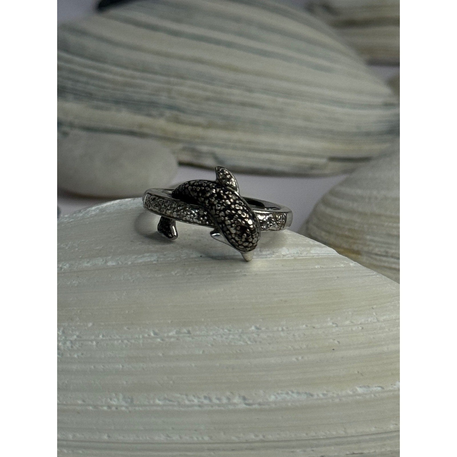 925 Sterling Silver Dolphin Diamond Ring Size 7