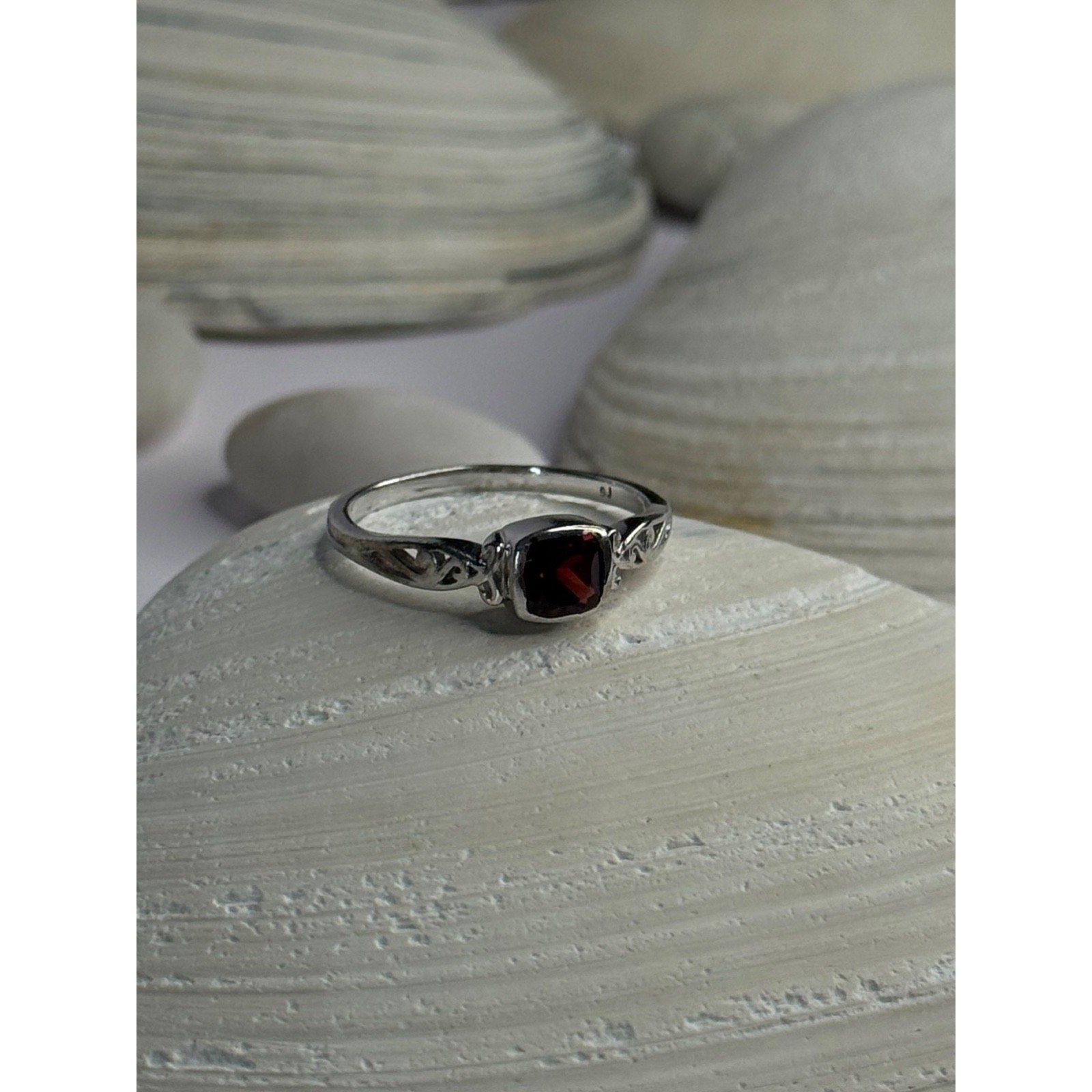 925 STERLING SILVER GARNET RING SIZE 8.5