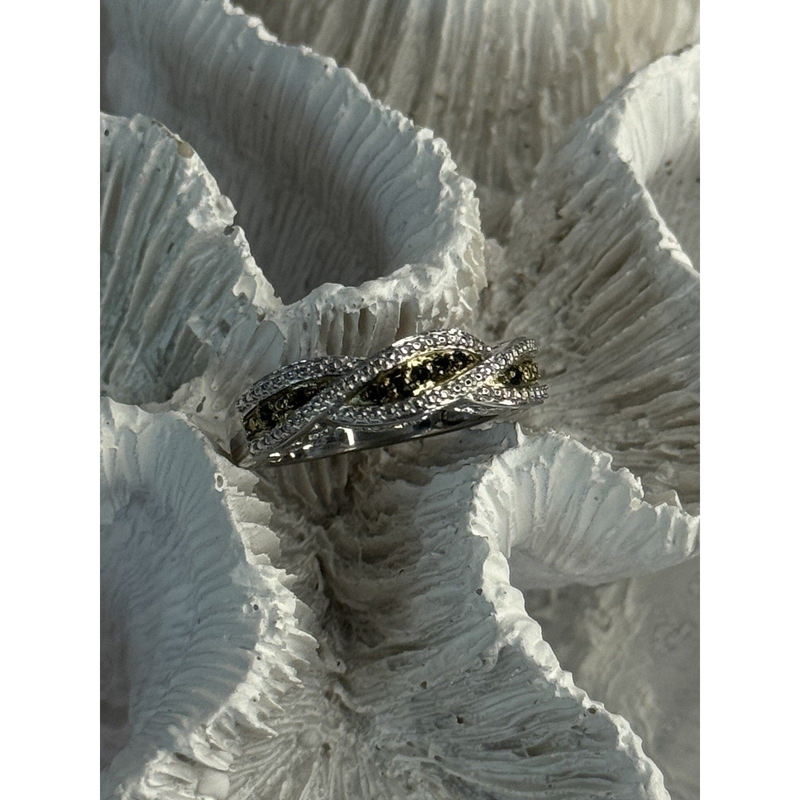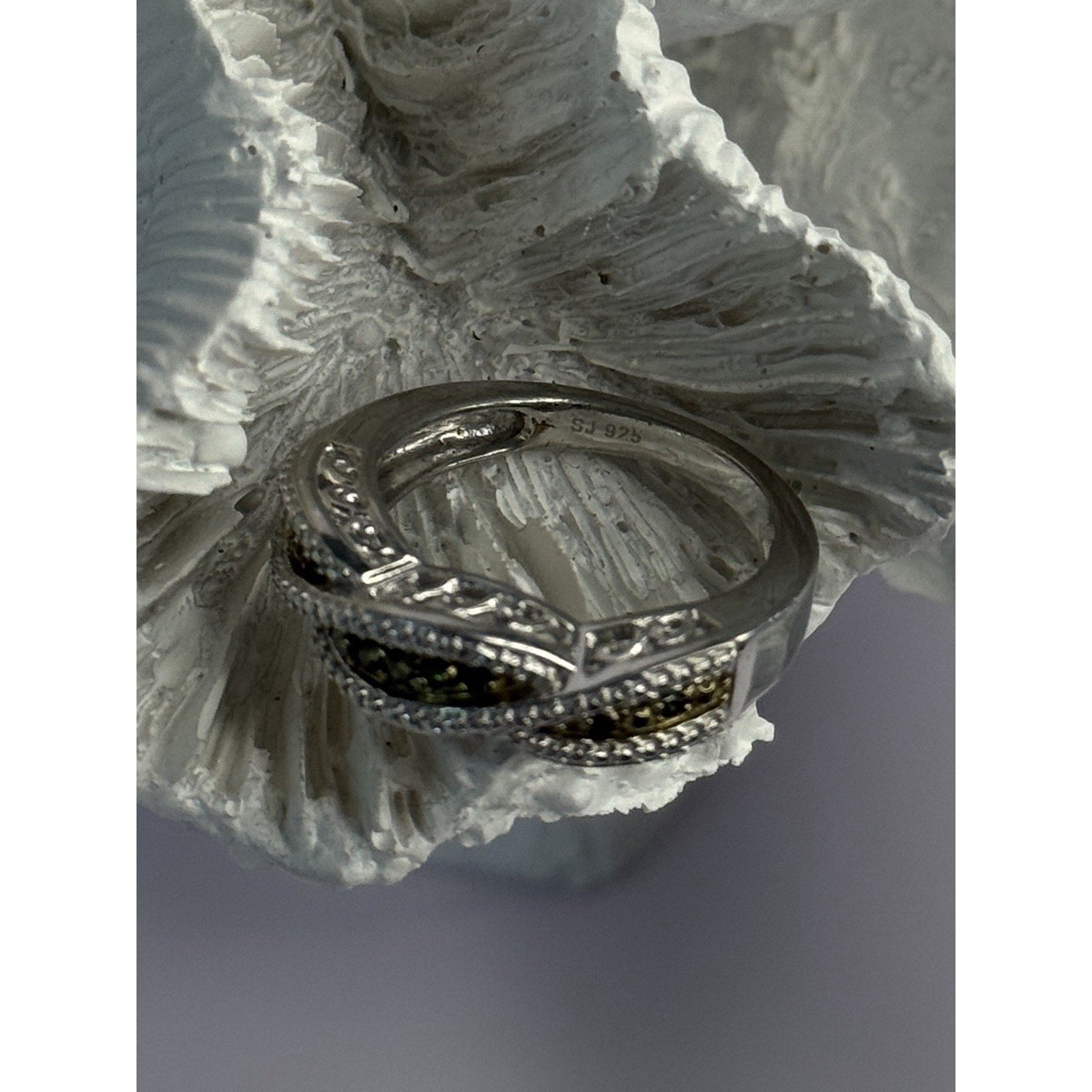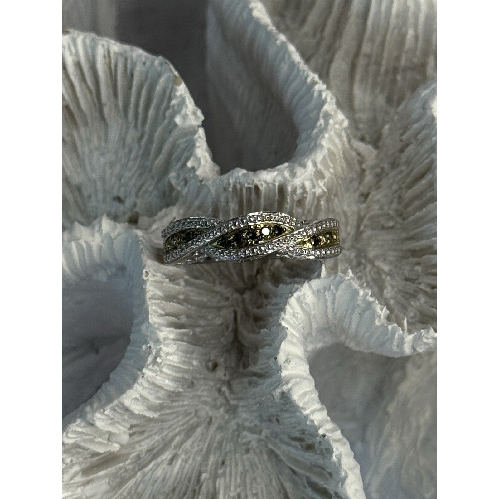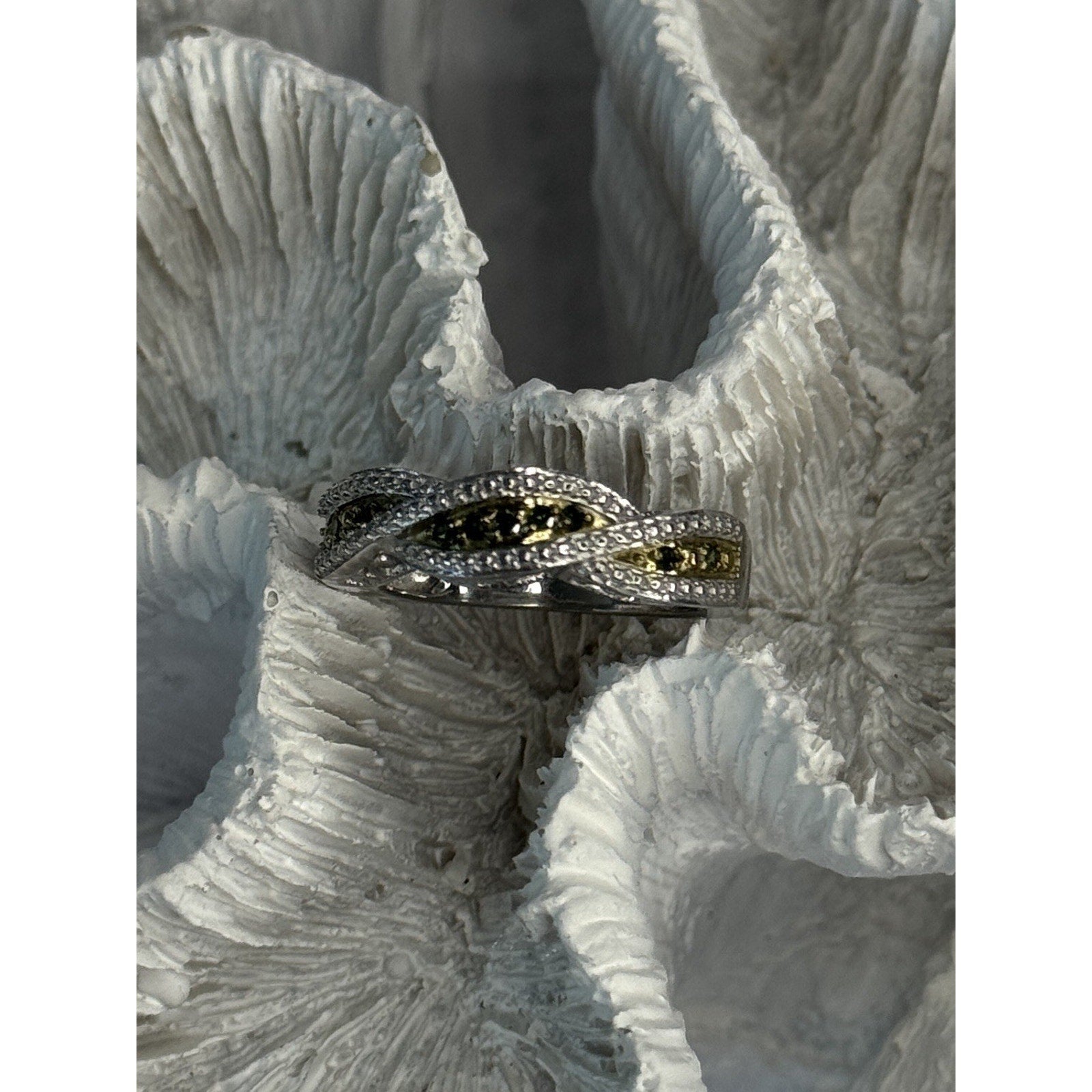 925 STERLING SILVER GOLD PART EMERALD RING SIZE 6