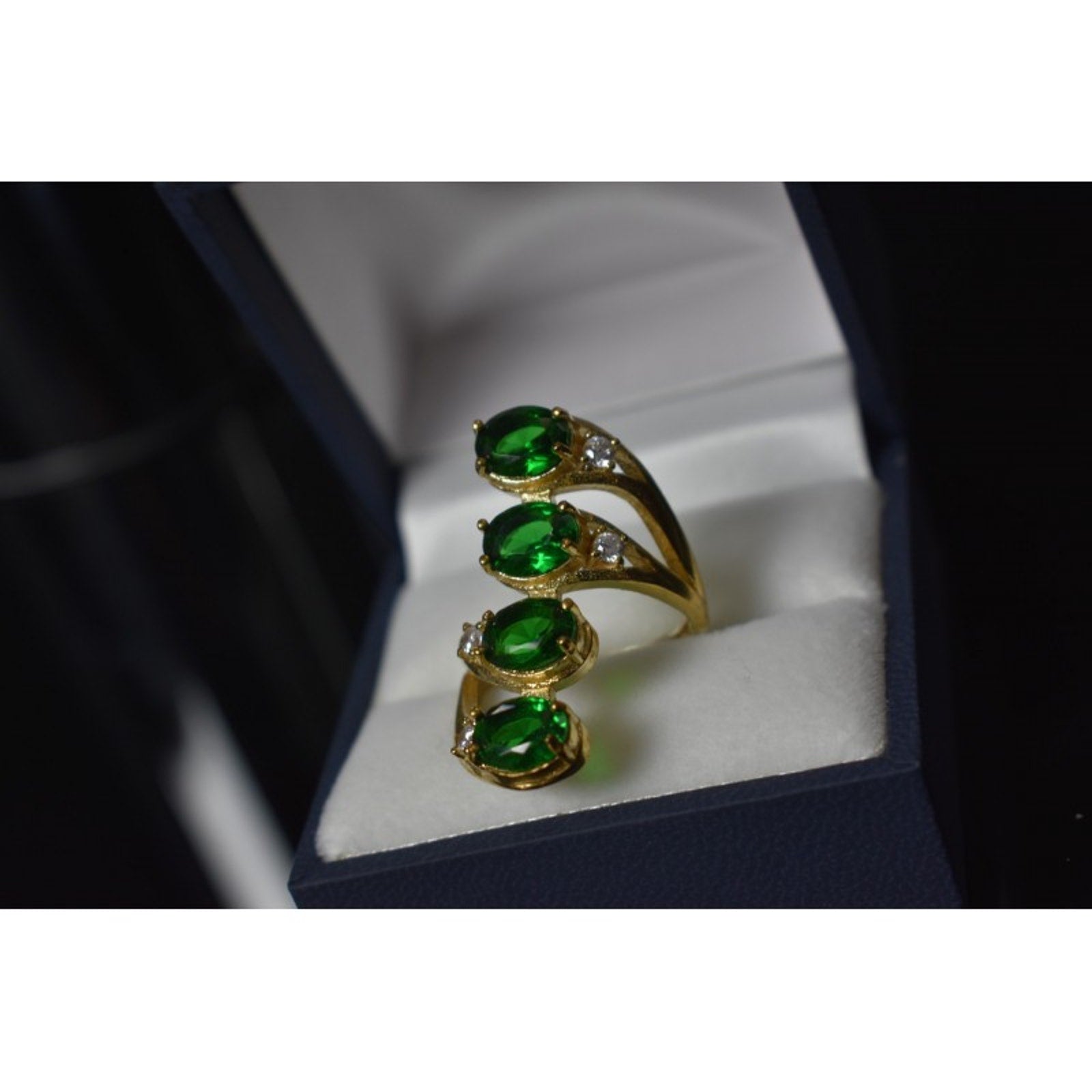 925 STERLING SILVER GOLD PLATED ALPANITE & CZ RING SIZE 7