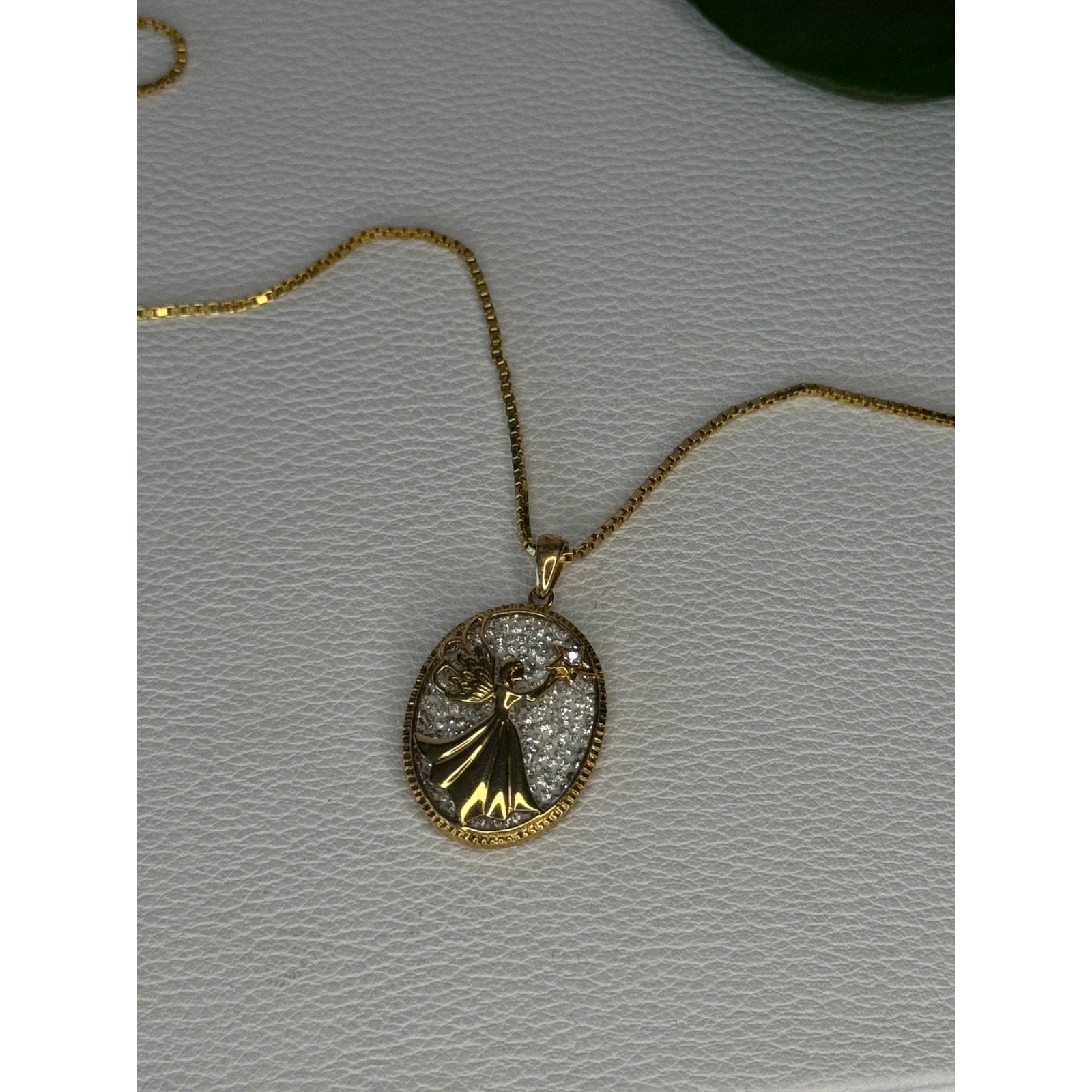 925 Sterling Silver Gold Plated Angel Cz Necklace Length 19.5 inch