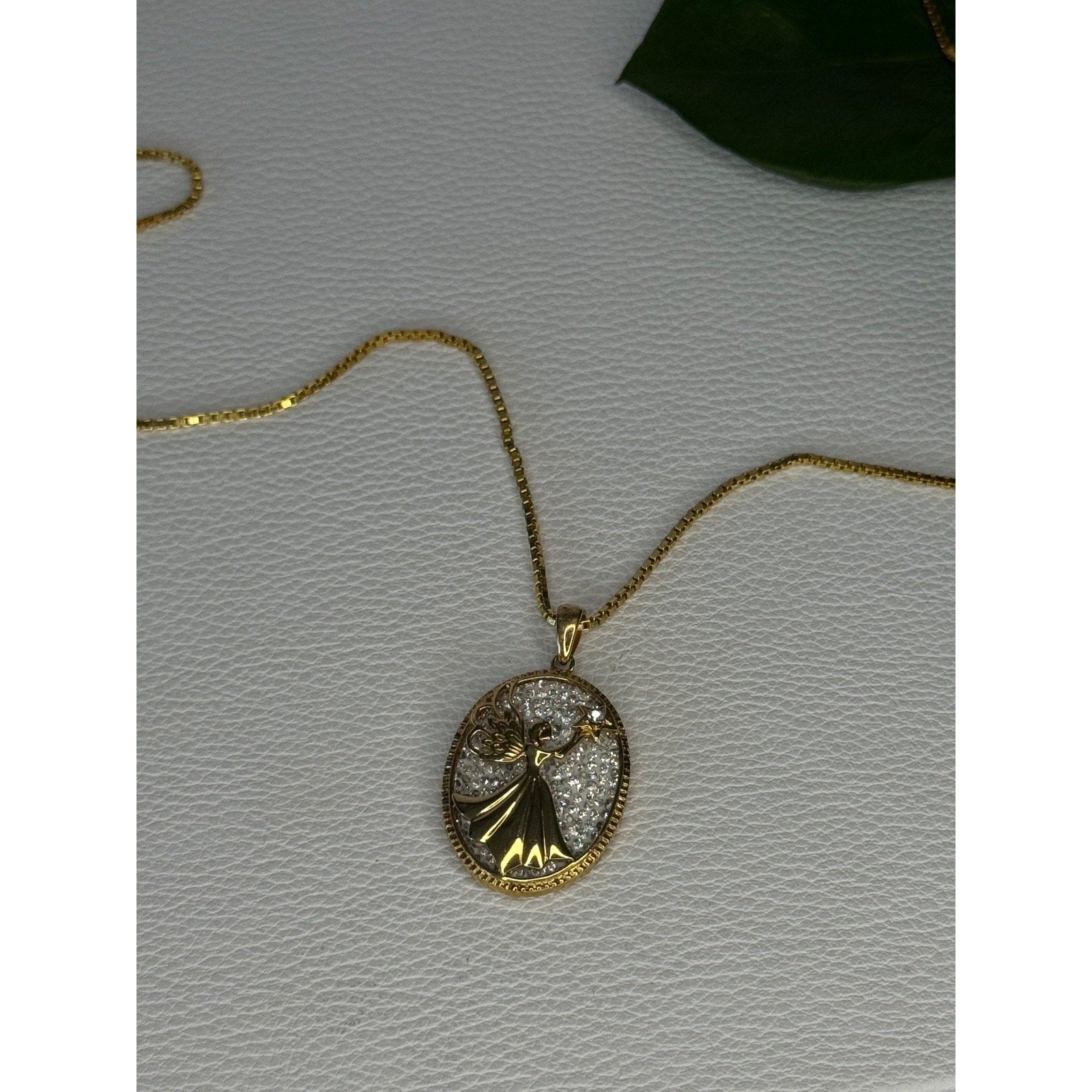 925 STERLING SILVER GOLD PLATED ANGEL CZ NECKLACE LENGTH 19.5 INCH