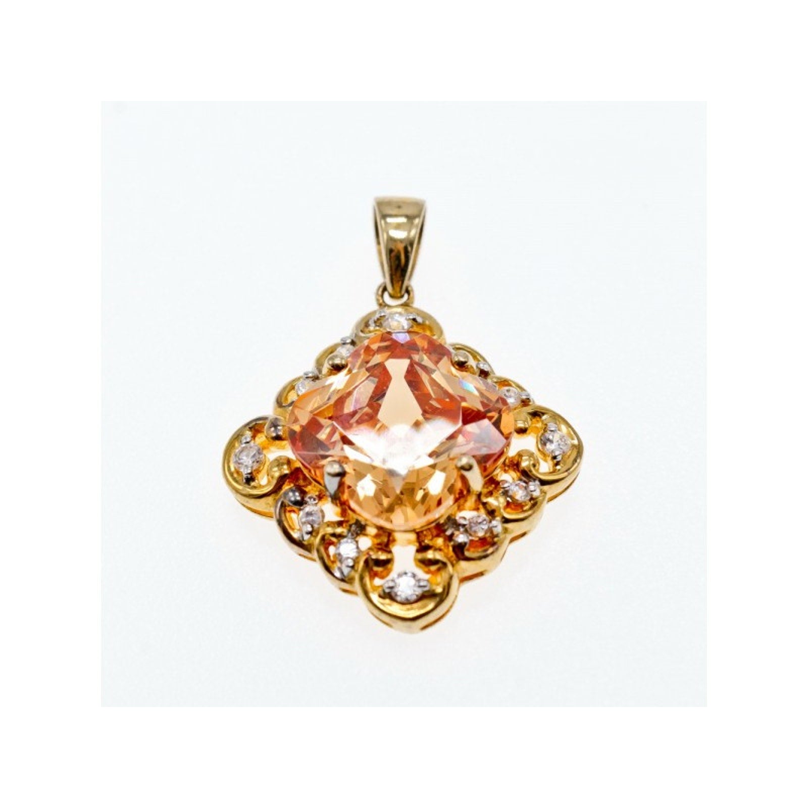 925 STERLING SILVER GOLD PLATED HELIODOR & CZ PENDANT