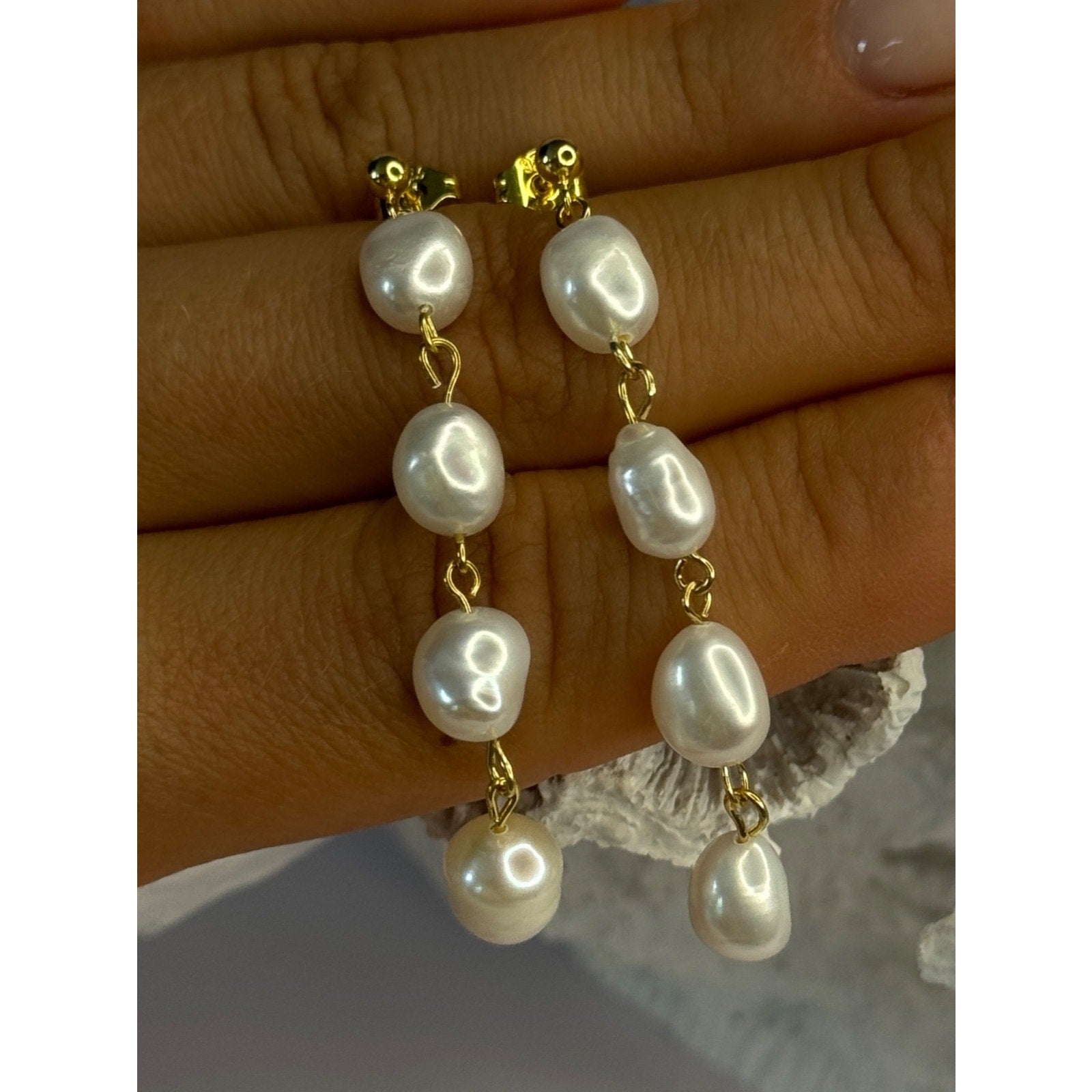 925 STERLING SILVER GOLD PLATED PEARL EARRINGS LENGTH 2.30 INCH