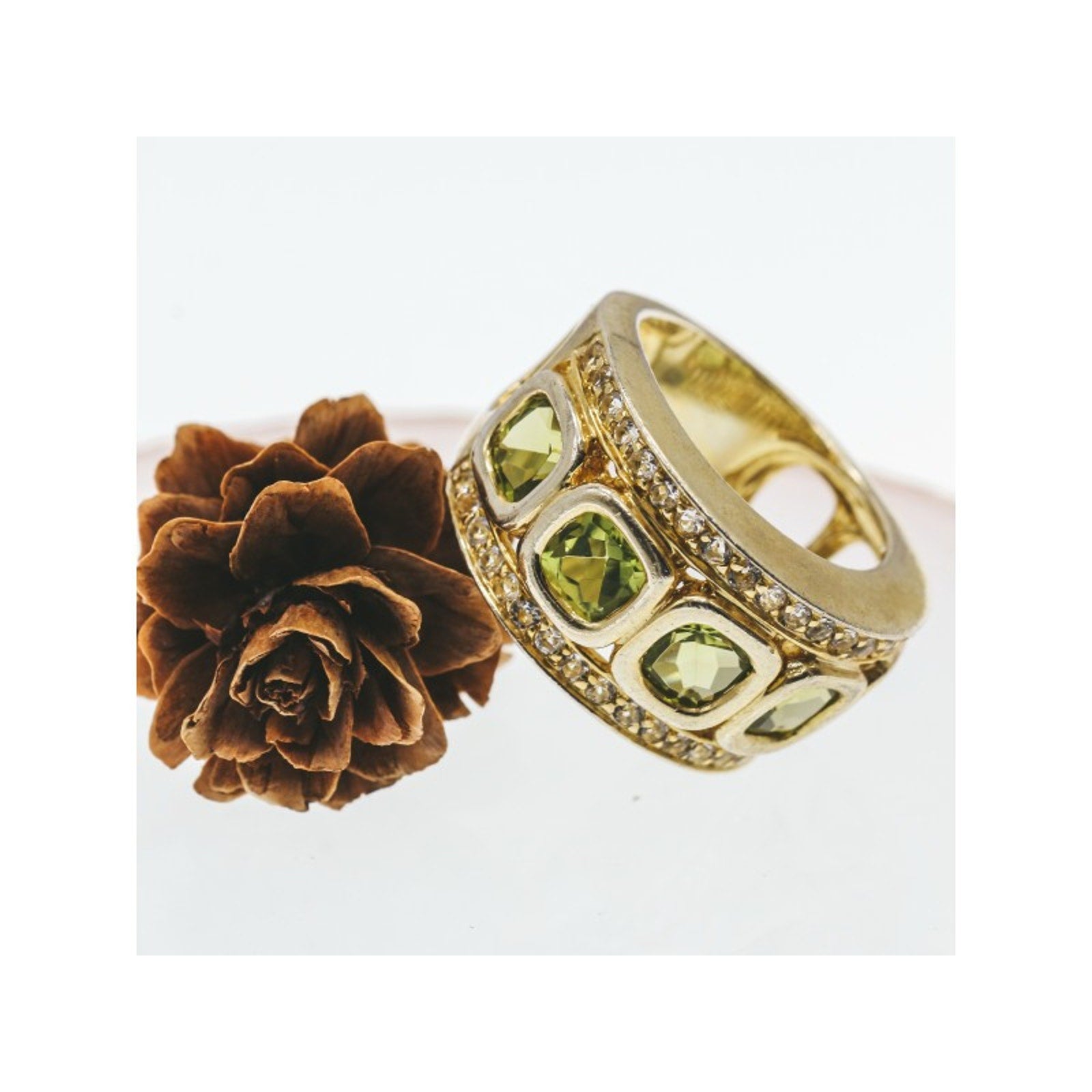 925 STERLING SILVER GOLD PLATED PERIDOT & CZ RING SIZE 7