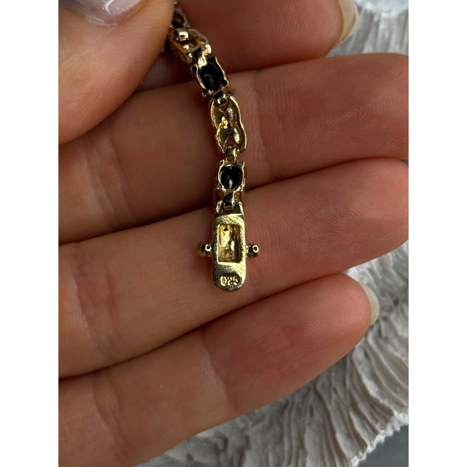 925 STERLING SILVER GOLD PLATED SAPPHIRE & DIAMOND BRACELET LENGTH 7.5