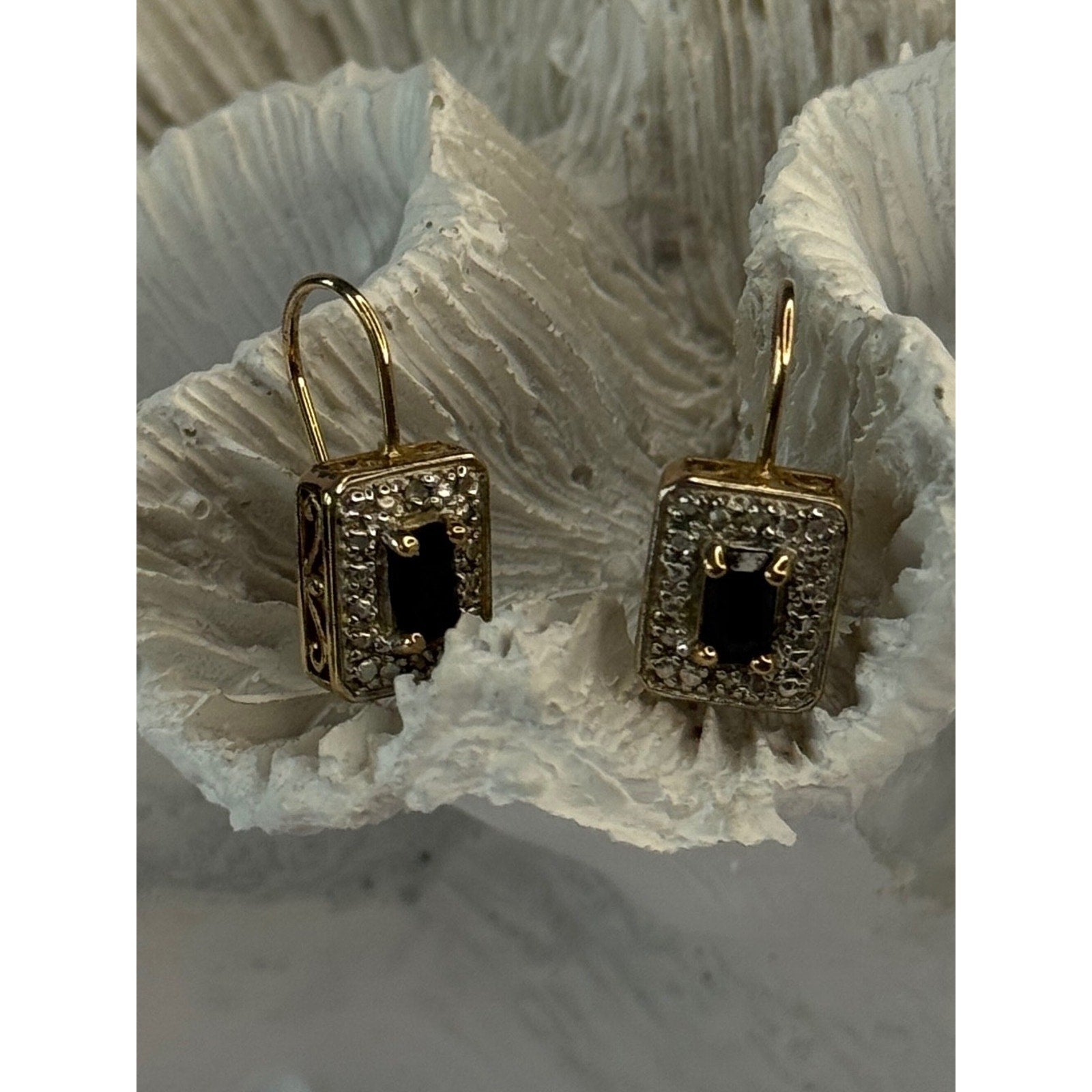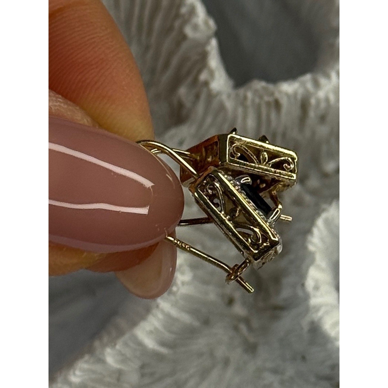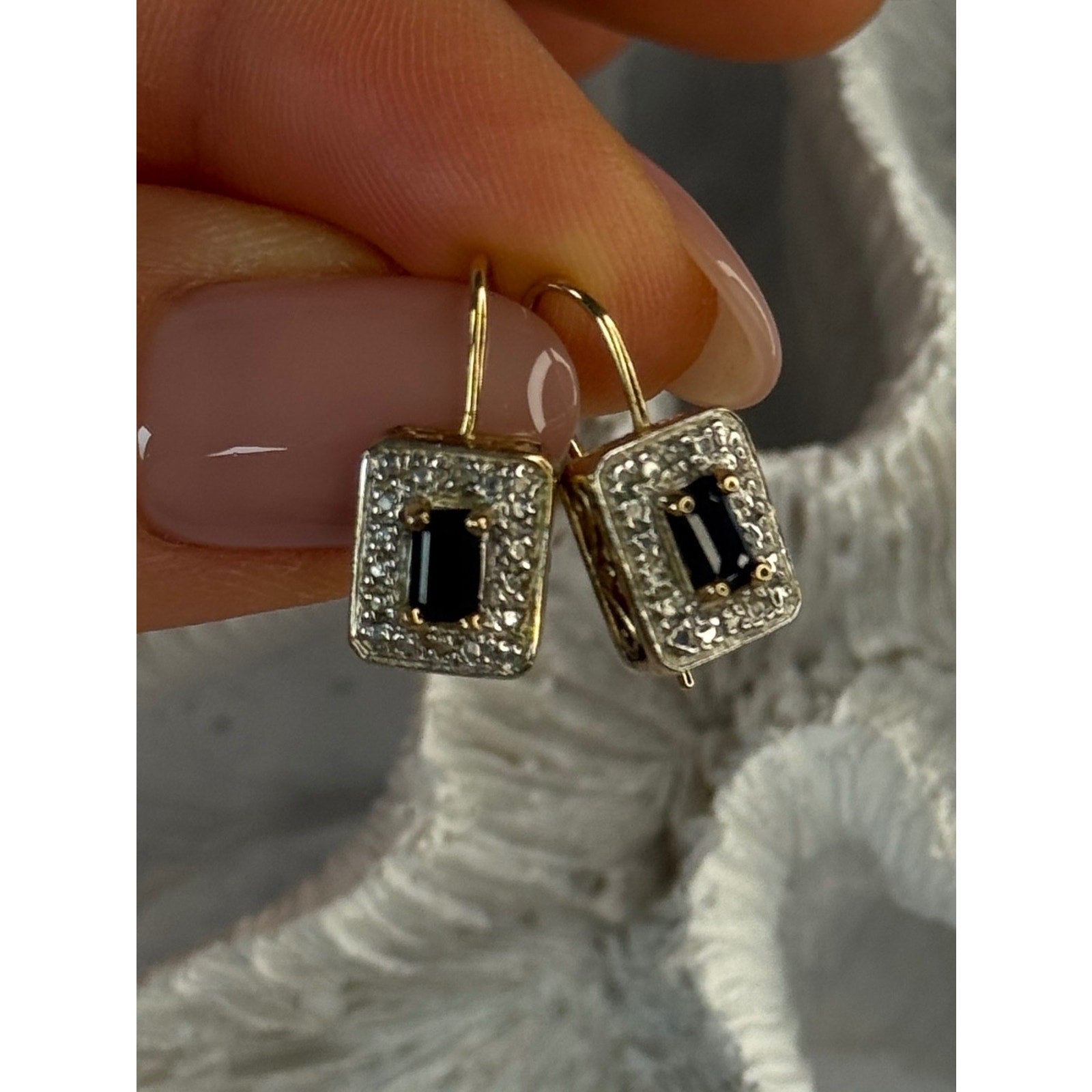 925 Sterling Silver Gold Plated Sapphire Earrings Length 0.70 inch