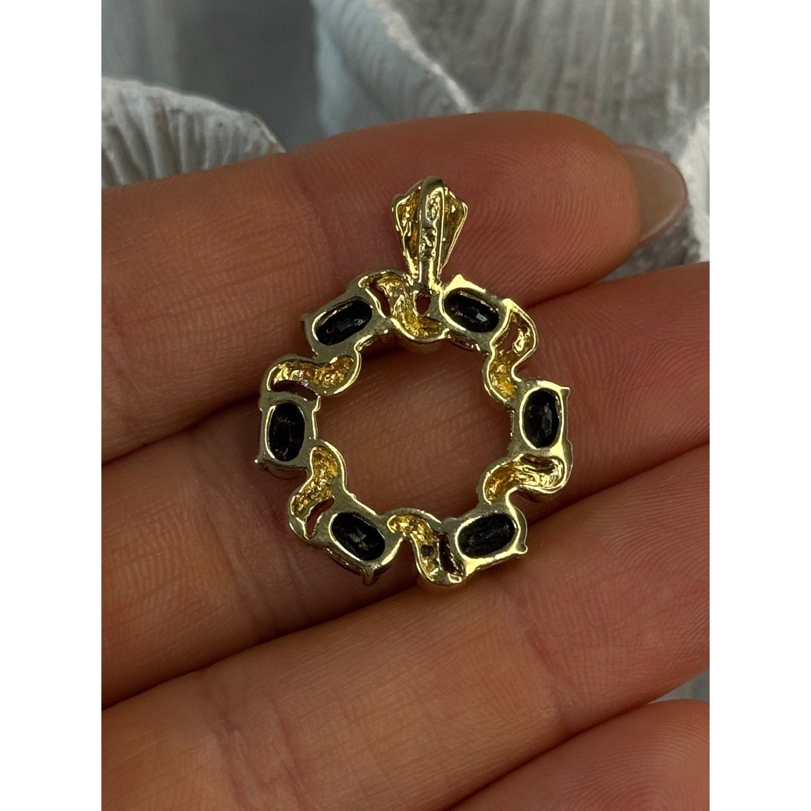 925 STERLING SILVER GOLD PLATED SAPPHIRE PENDANT LENGTH 1.15 INCH