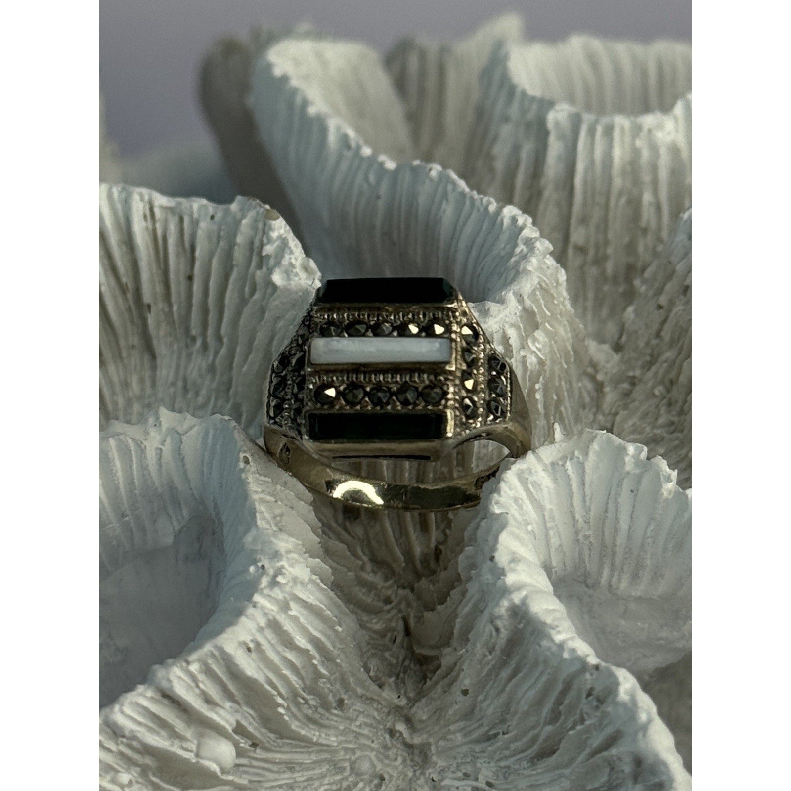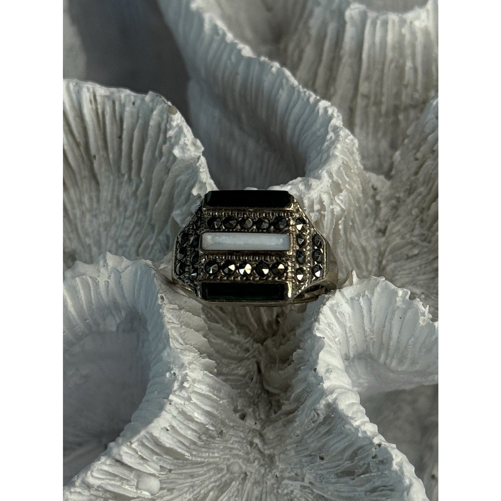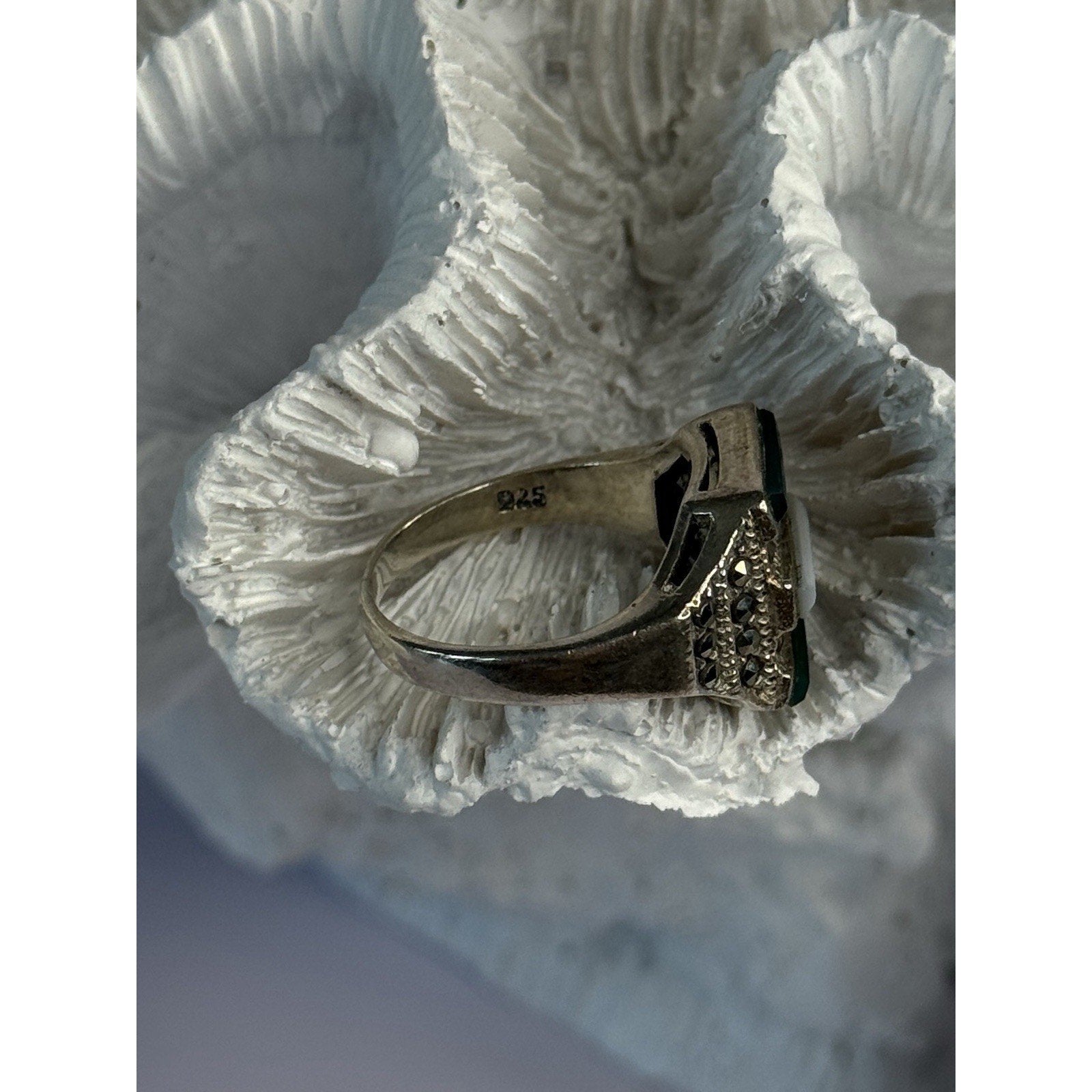 925 STERLING SILVER JADE ABALONE MARCASITE RING SIZE 6