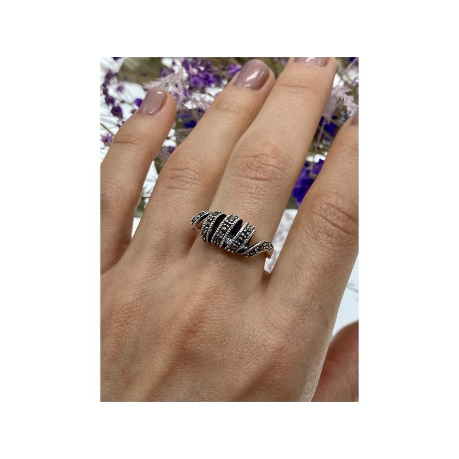 925 STERLING SILVER MARCASITES "SPIRAL" RING SIZE 9.5