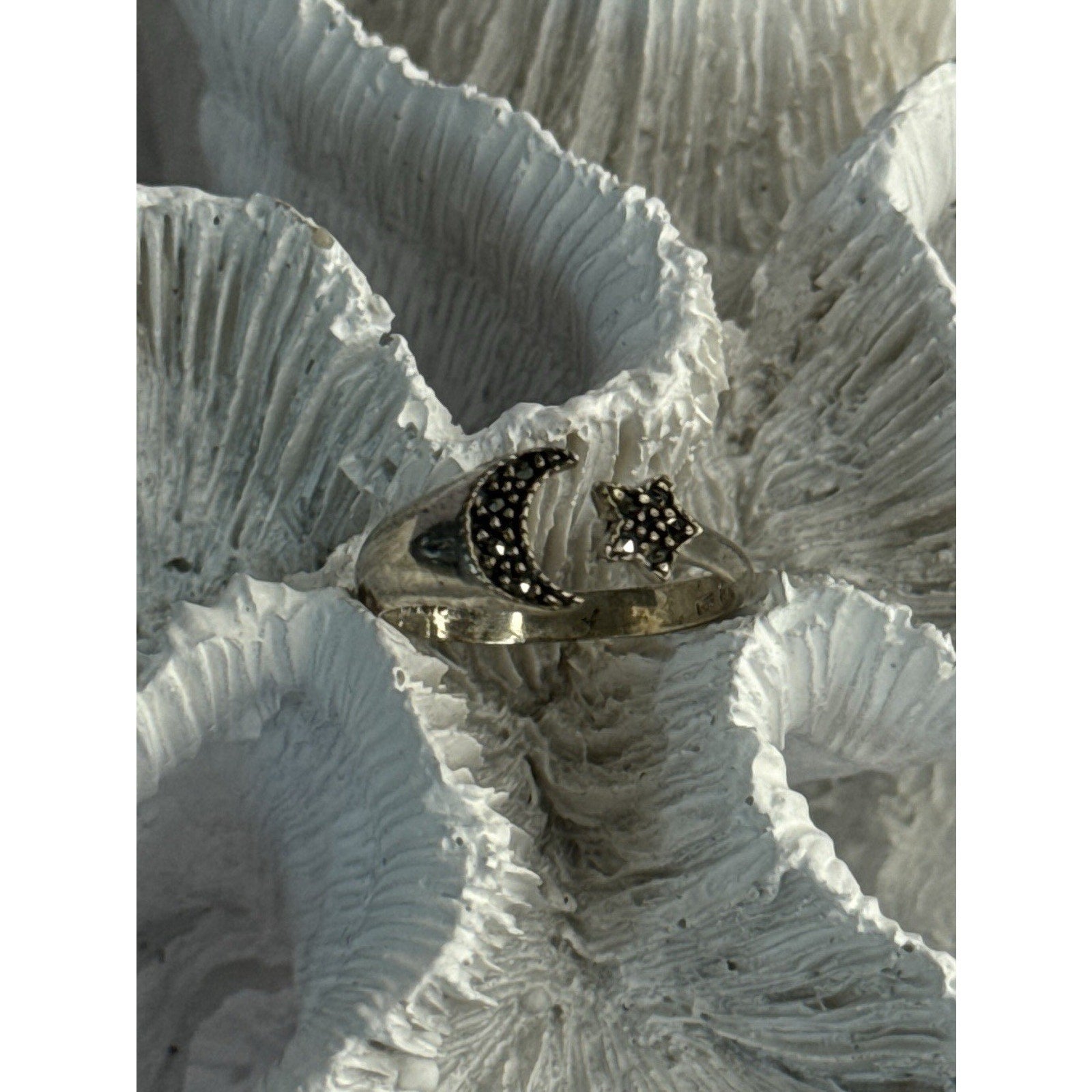 925 STERLING SILVER MOON & STAR MARCASITE RING SIZE 8