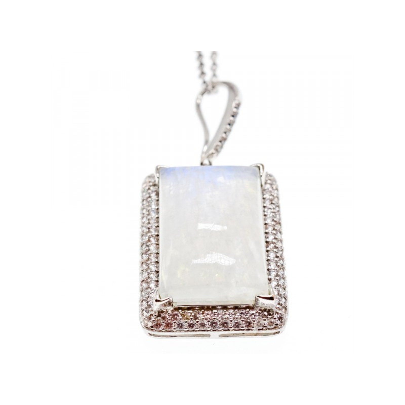 925 Sterling Silver Moonstone & CZ Chain with Pendant