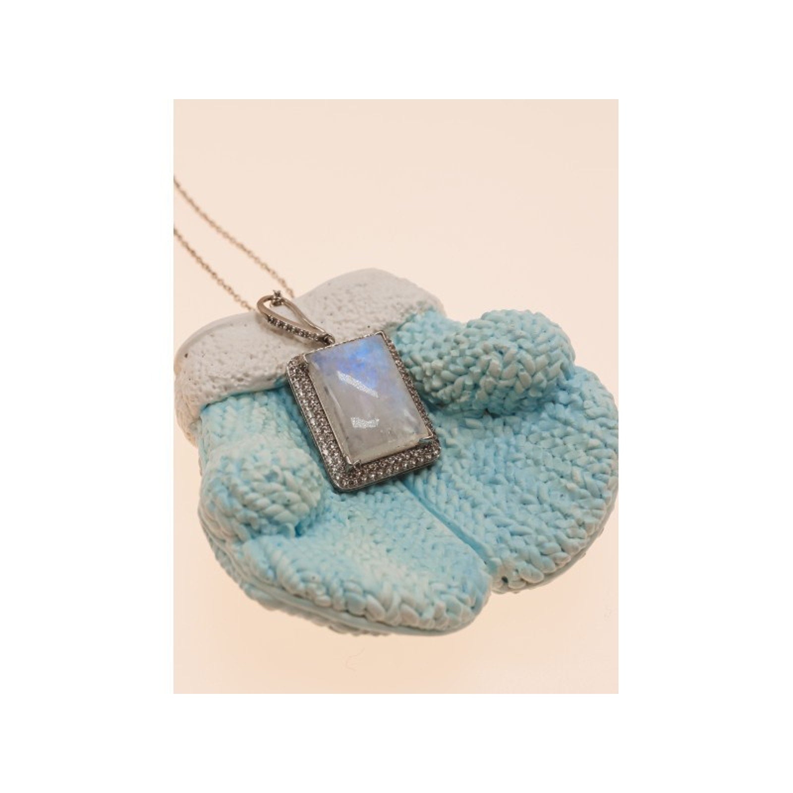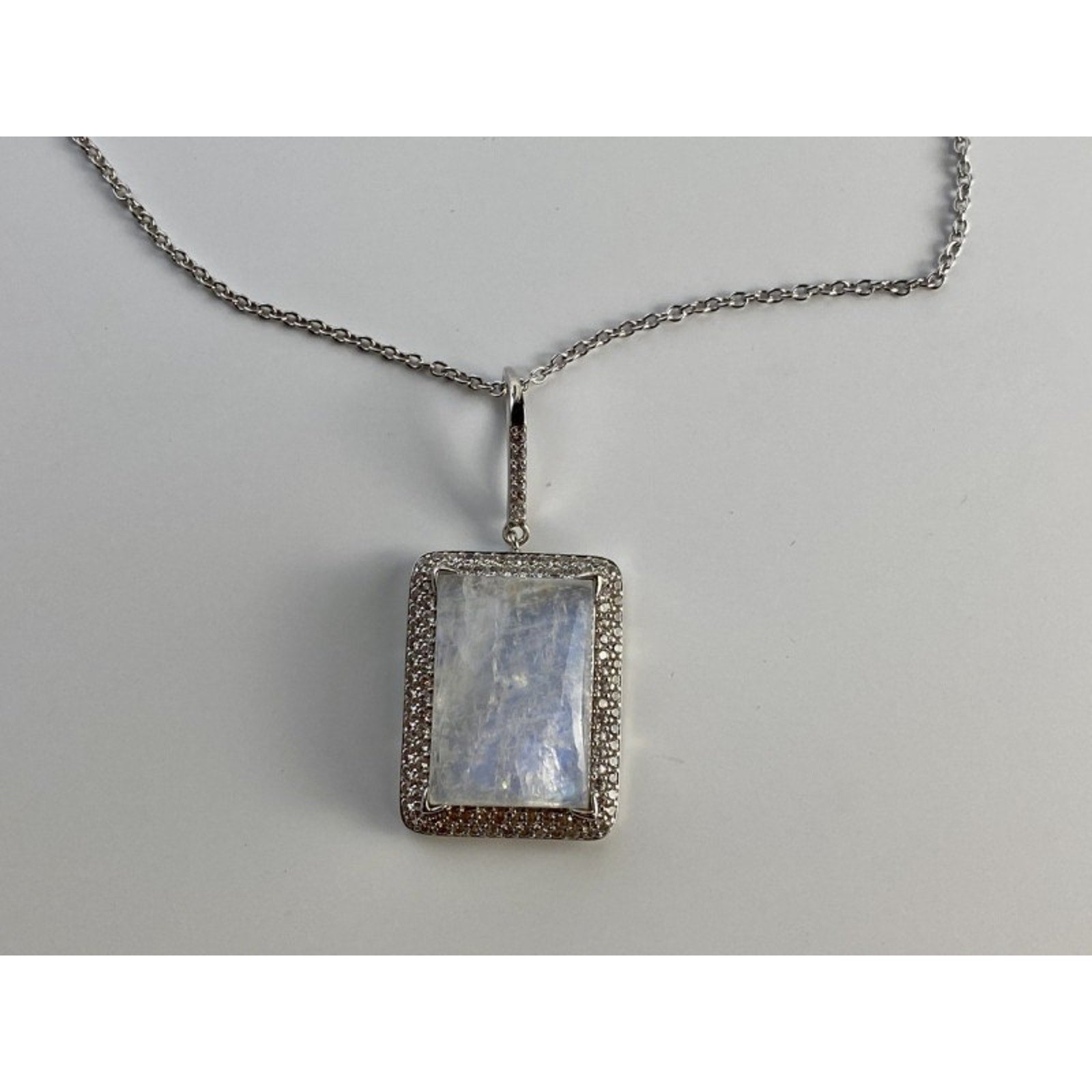 925 STERLING SILVER MOONSTONE & CZ CHAIN WITH PENDANT