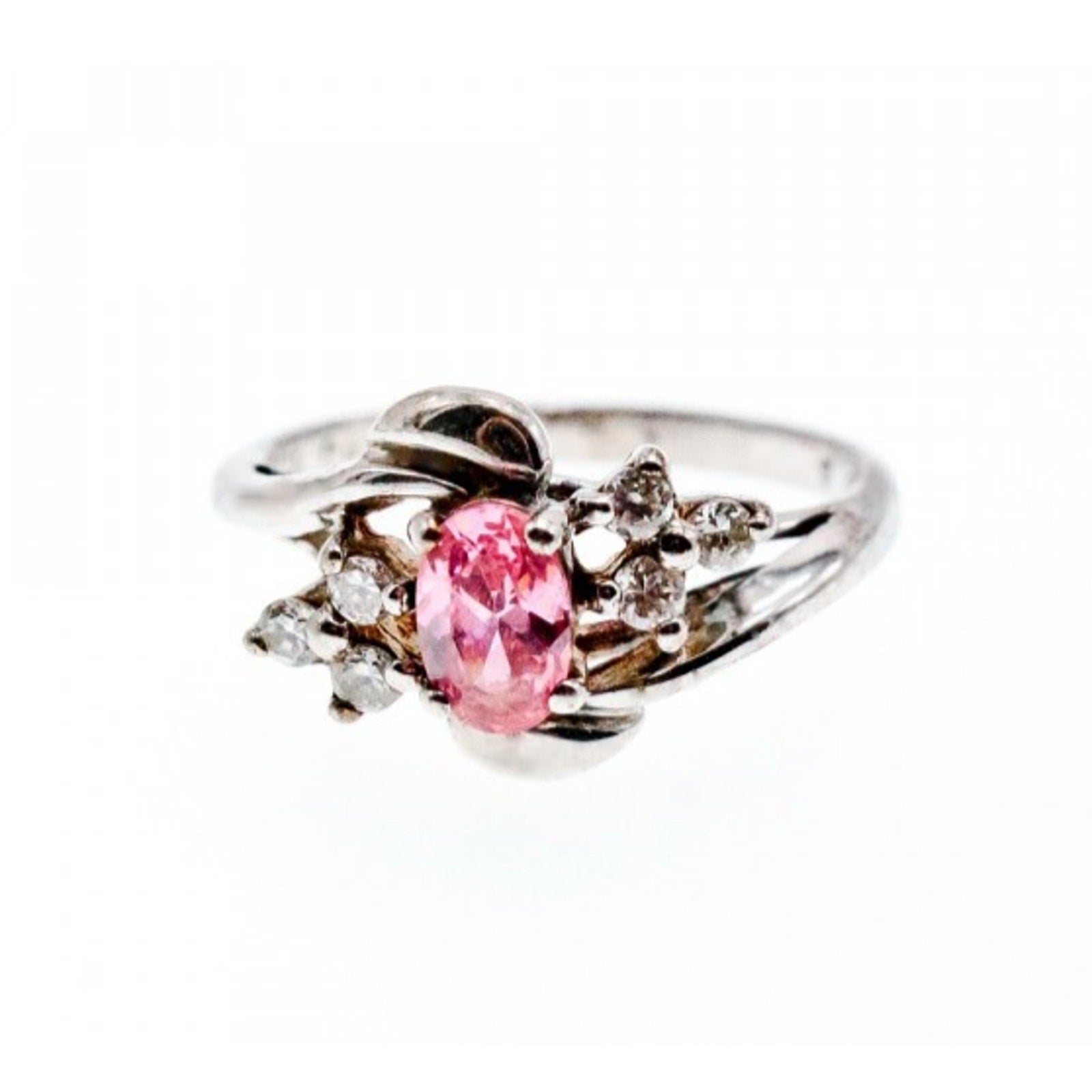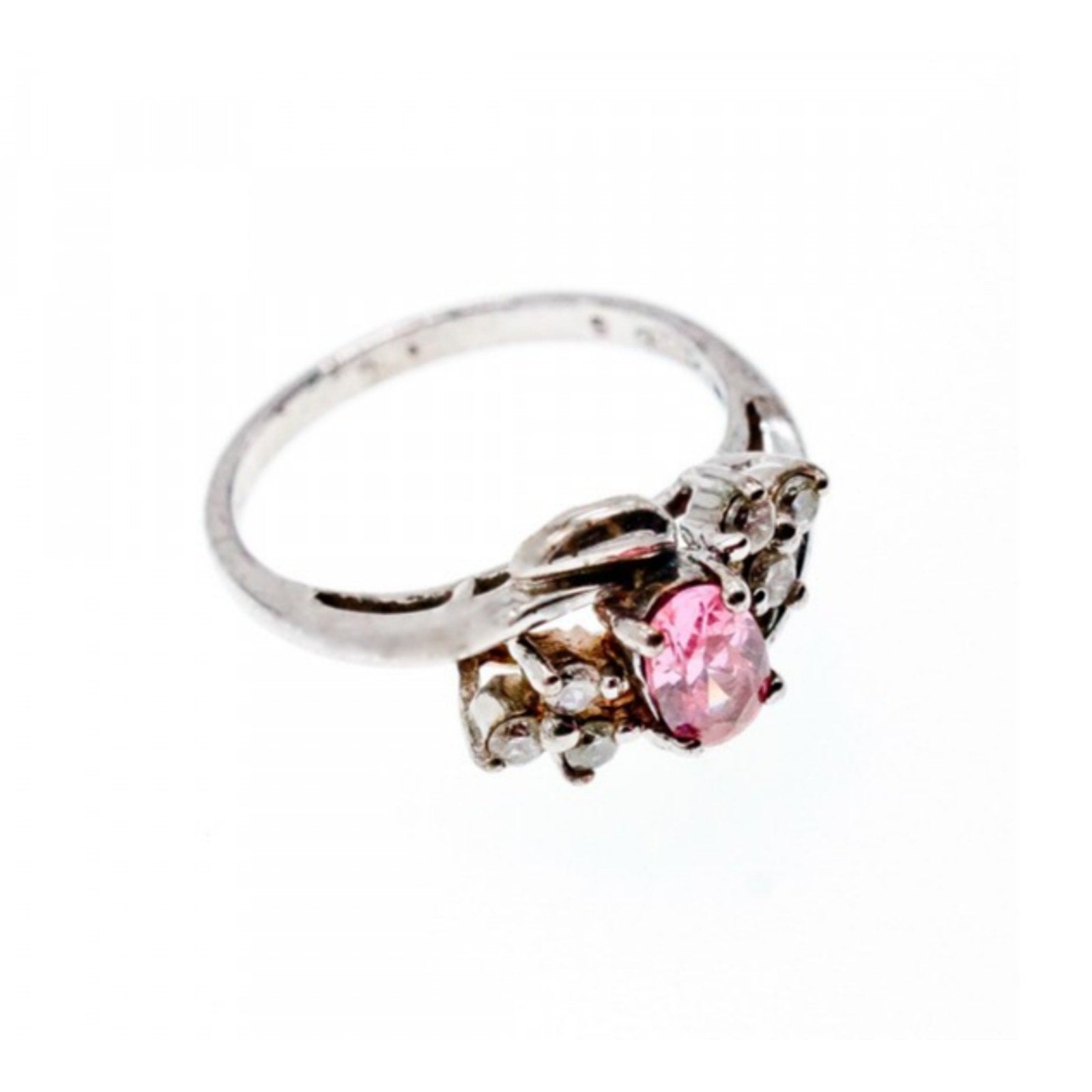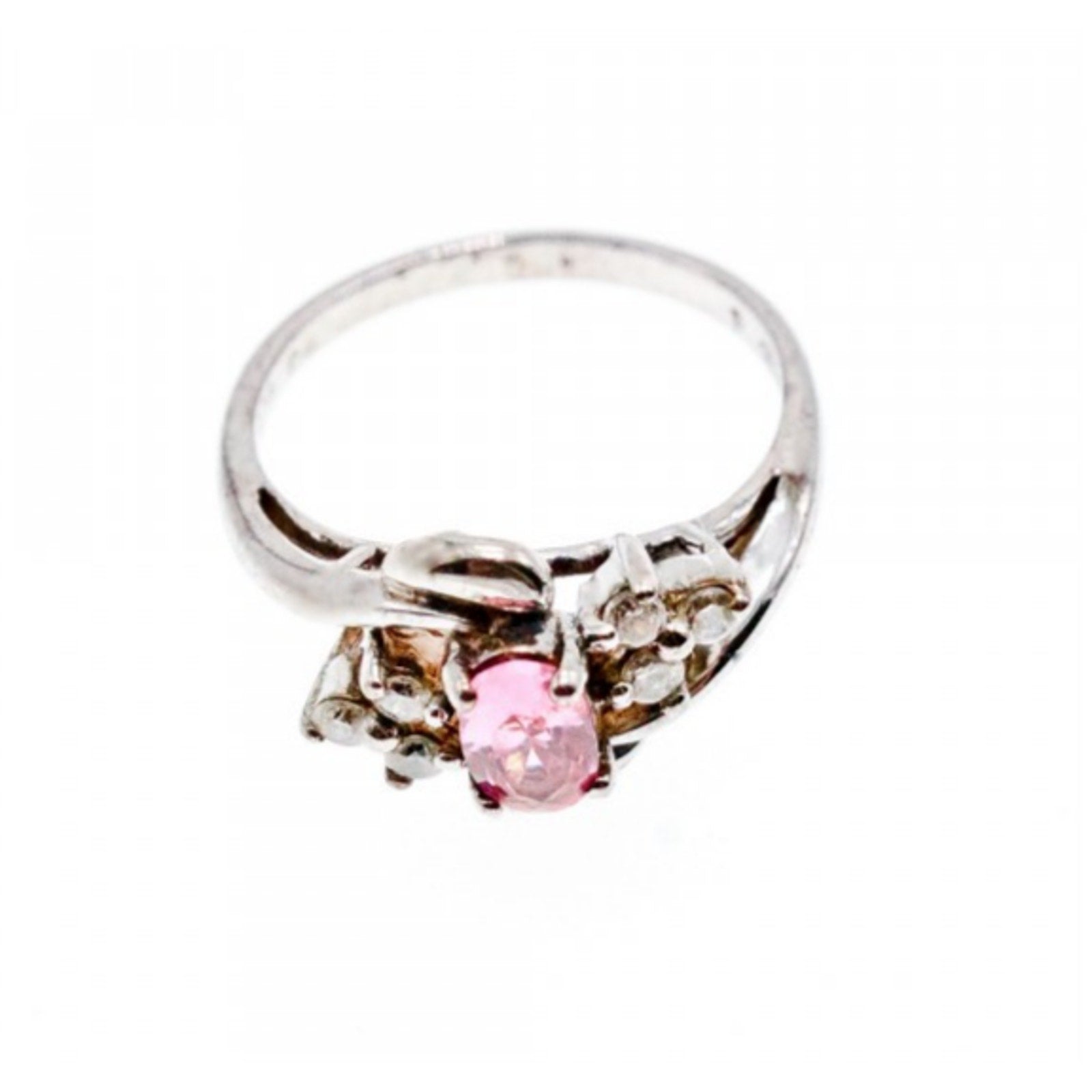 925 STERLING SILVER MORGANITE & CZ RING SIZE 6.5