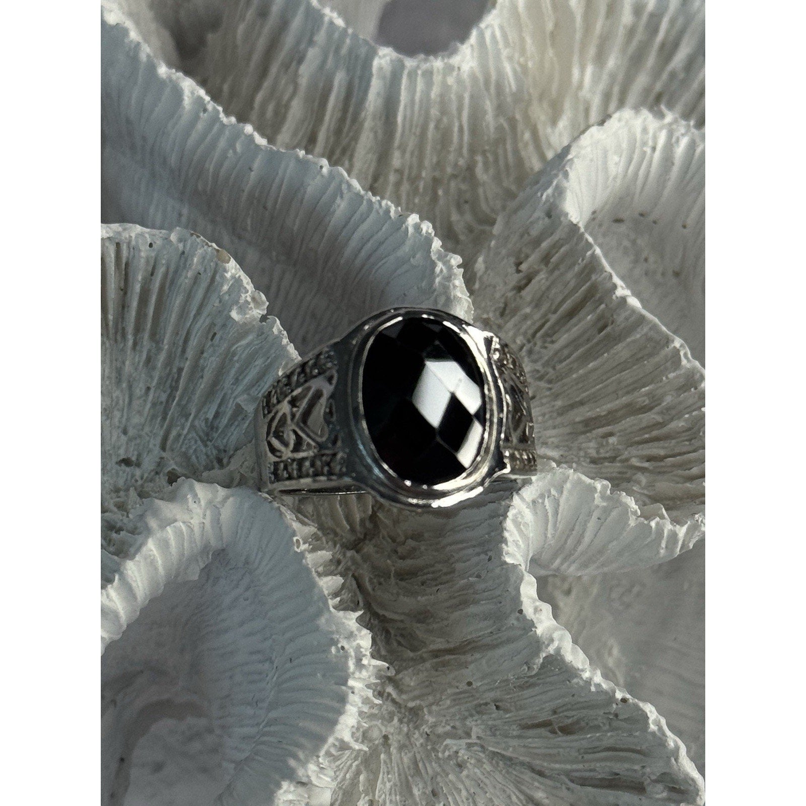 925 STERLING SILVER ONYX & BERYL RING SIZE 9