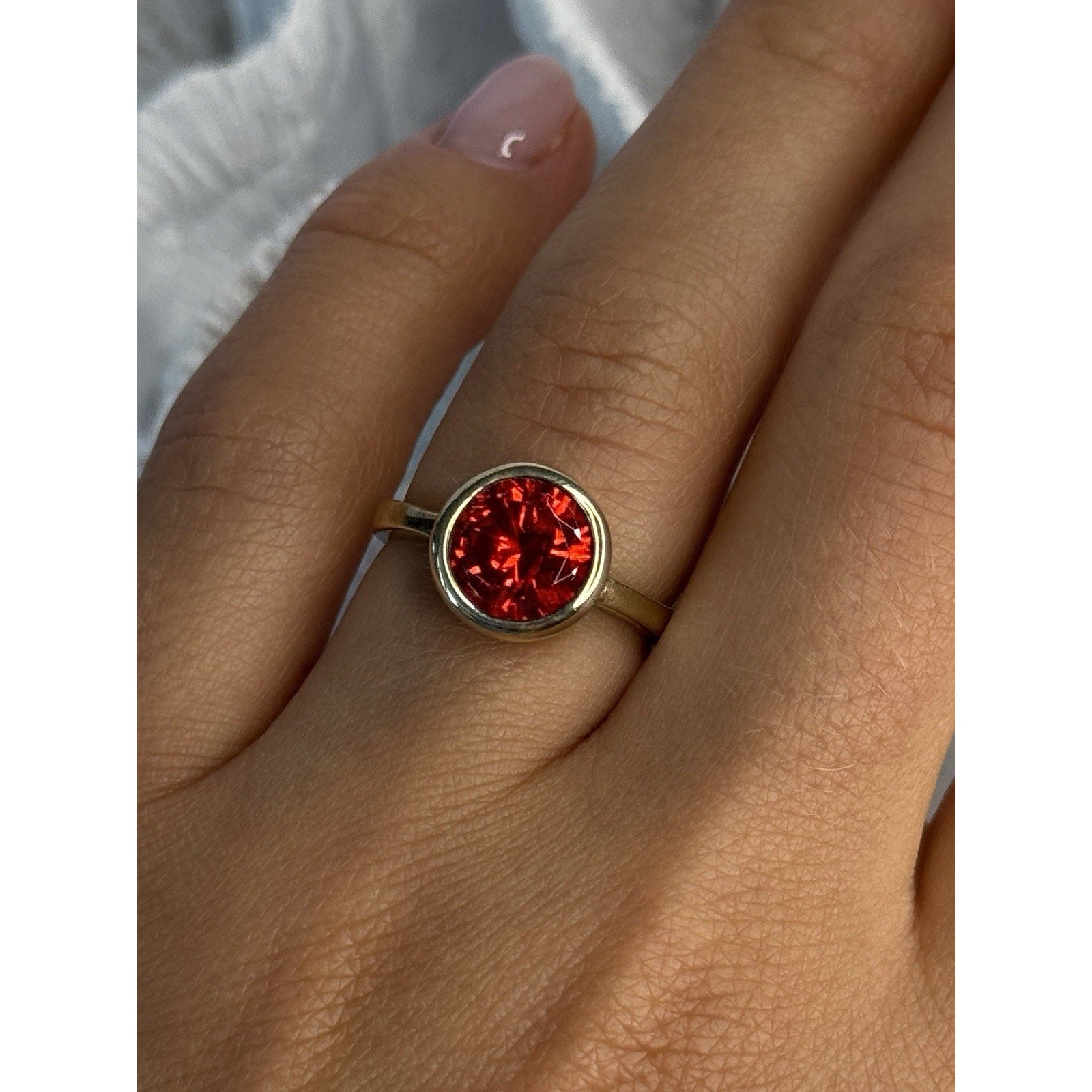 925 STERLING SILVER ORANGE CRYSTAL RING SIZE 7