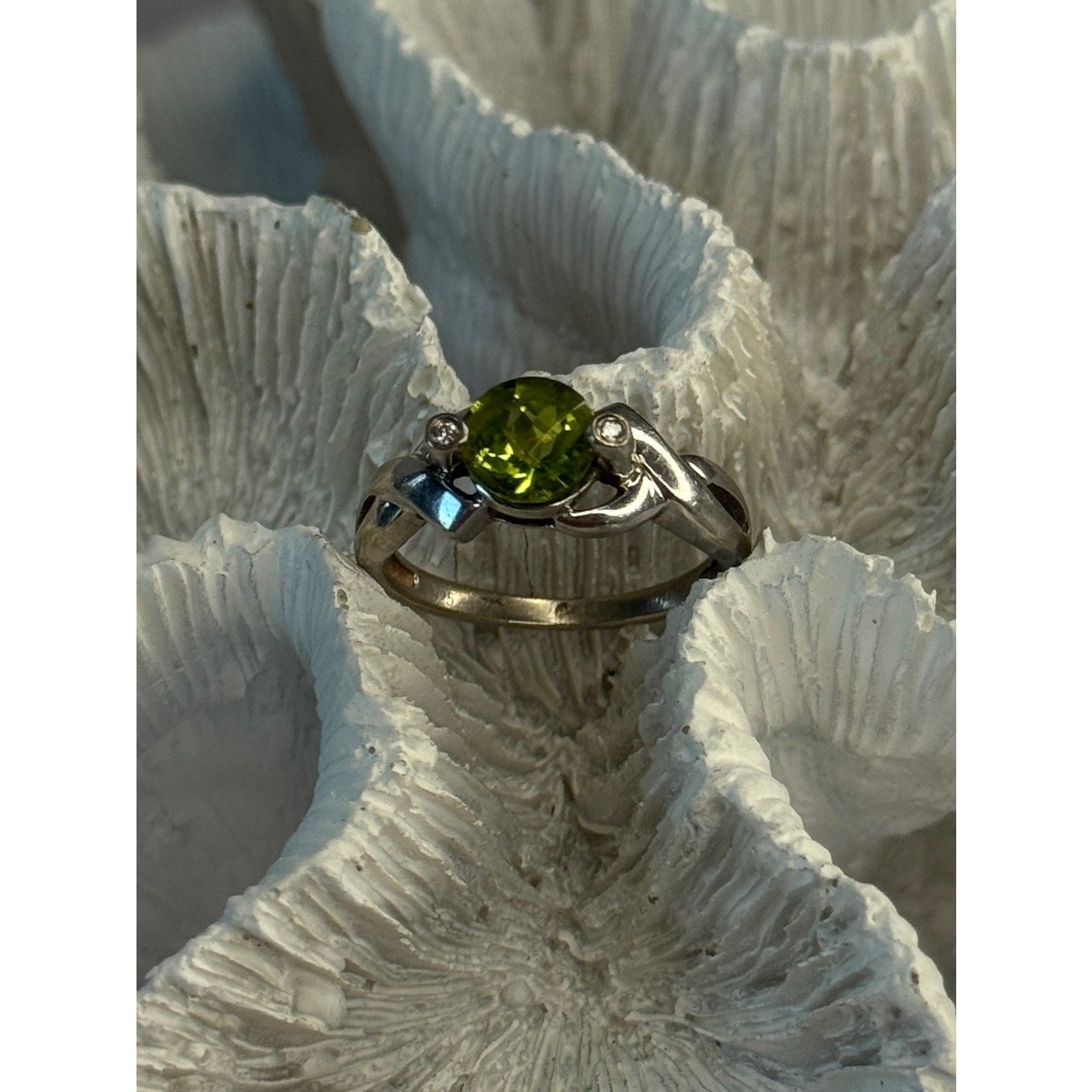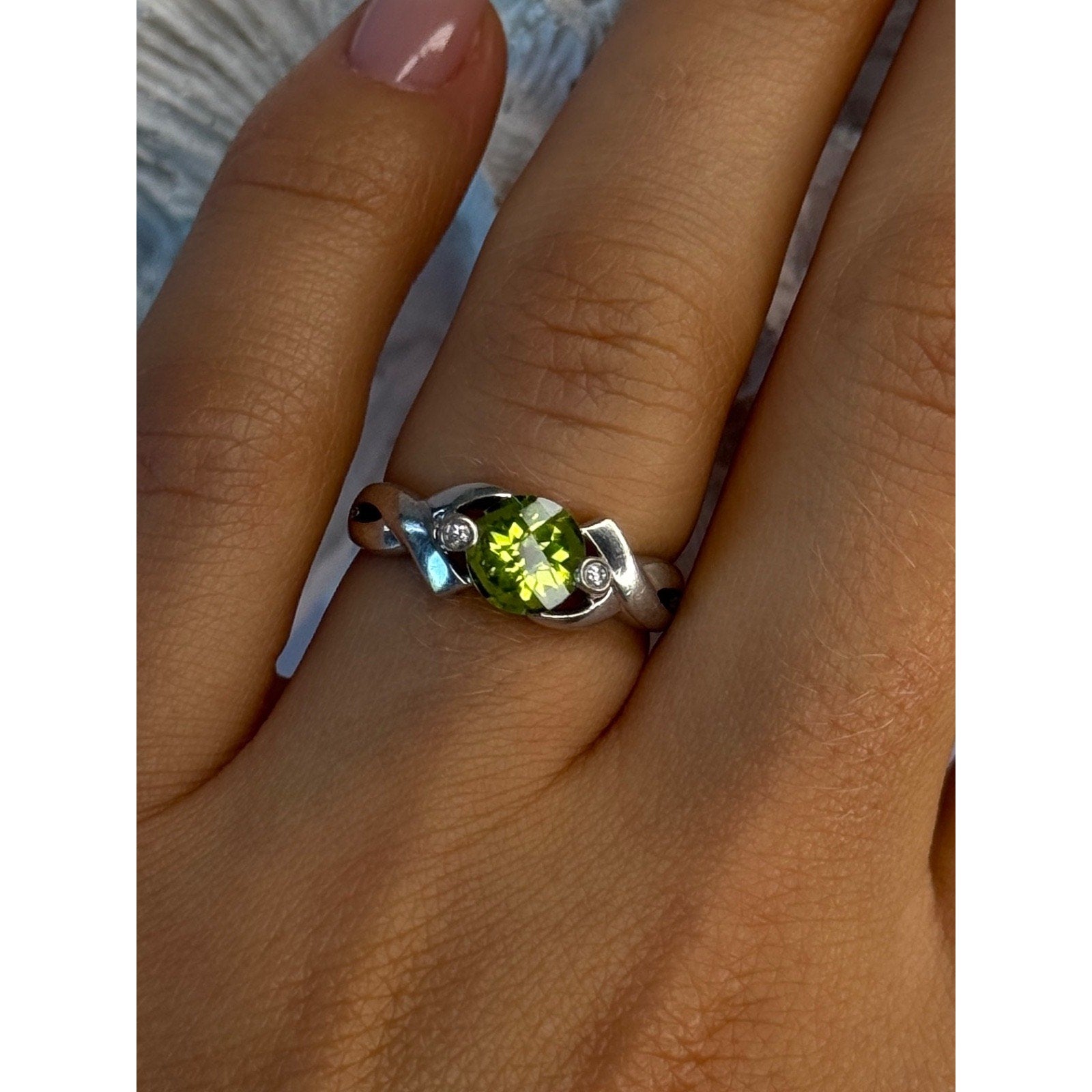 925 Sterling Silver Peridot & Beryl Ring Size 6
