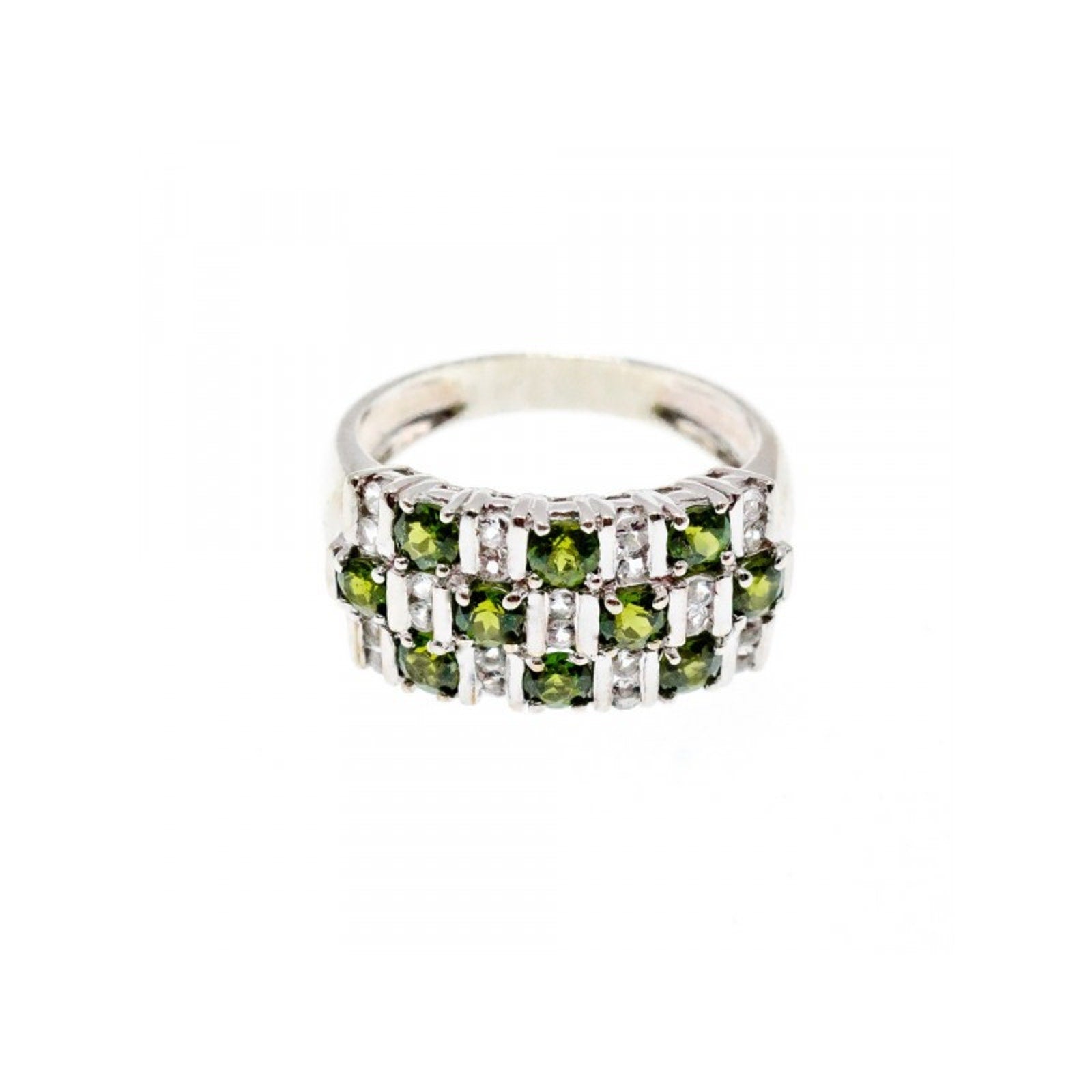 925 STERLING SILVER PERIDOT & WHITE SPINEL RING SIZE 9