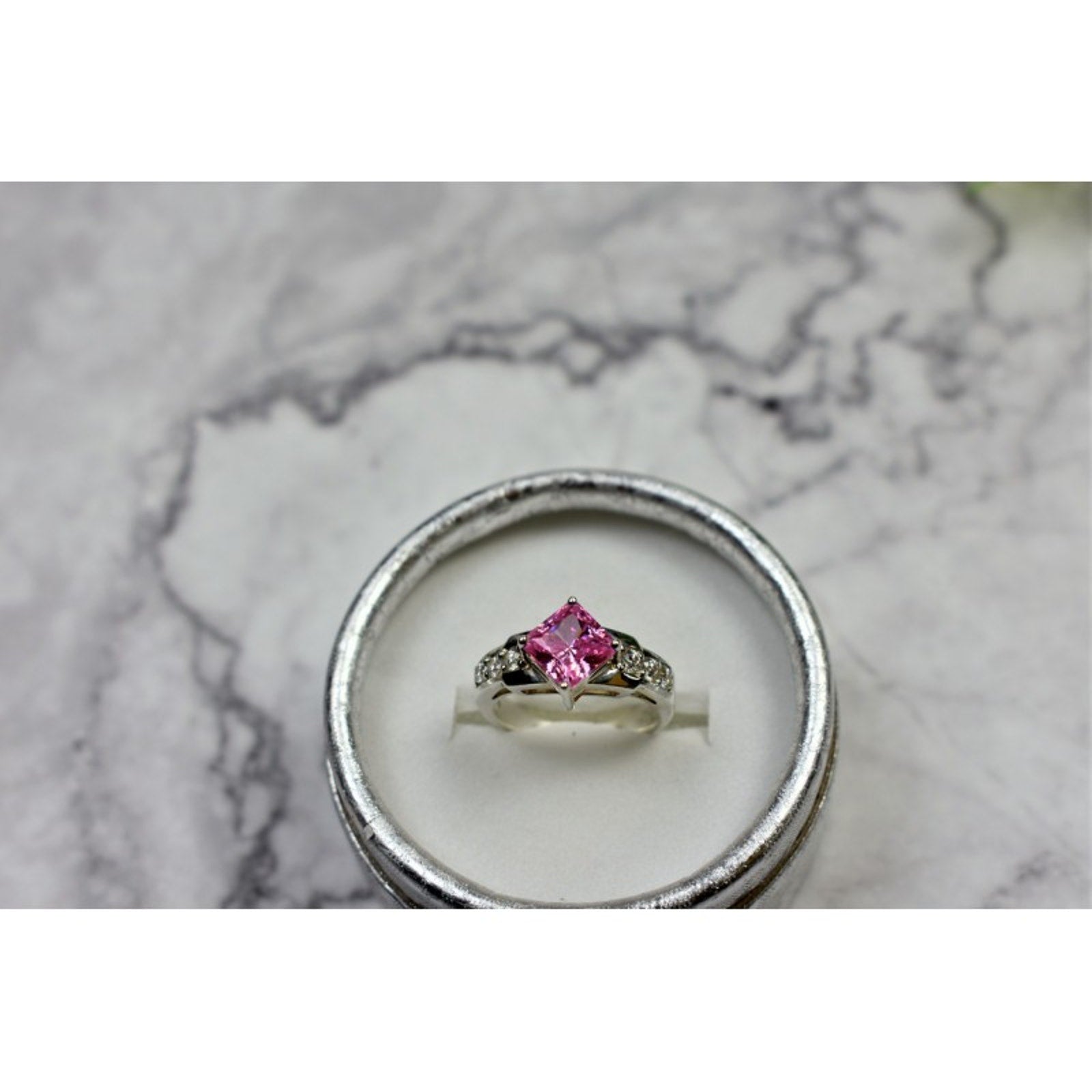 925 STERLING SILVER PINK & WHITE CZ RING SIZE 6