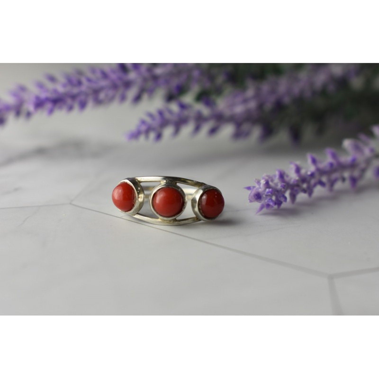 925 STERLING SILVER RED CORALS RING SIZE 6.5