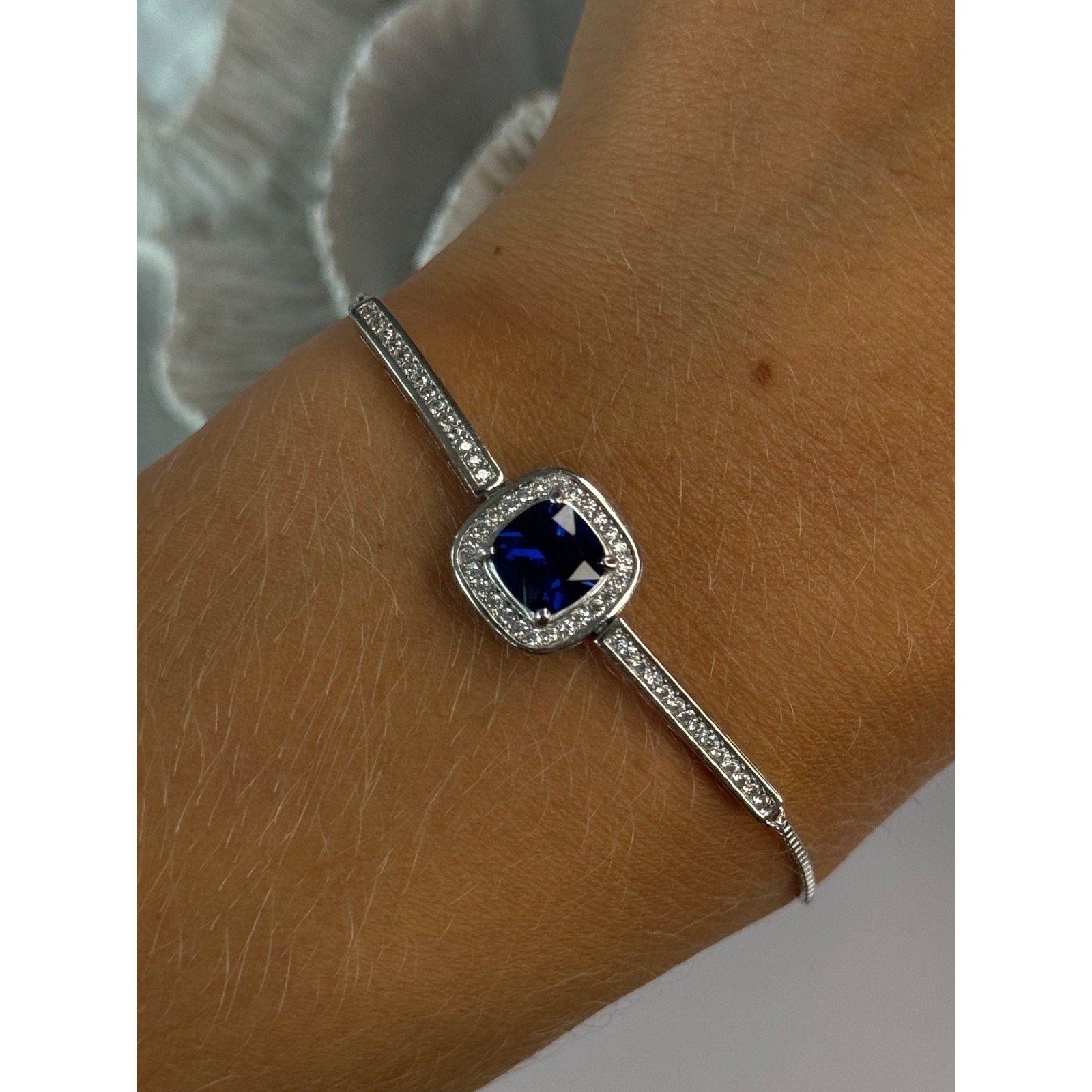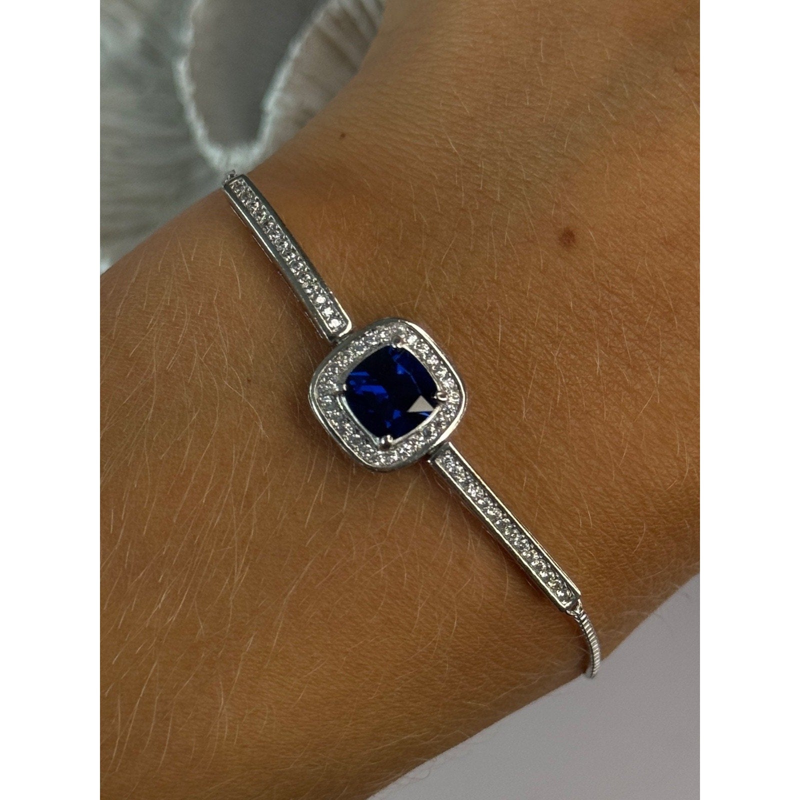 925 Sterling Silver Sapphire & Cz Bracelet Sizable