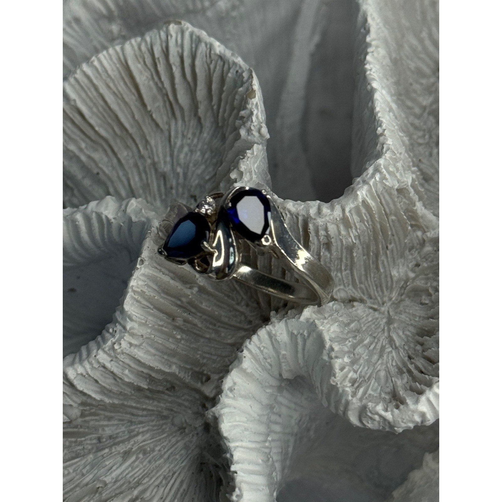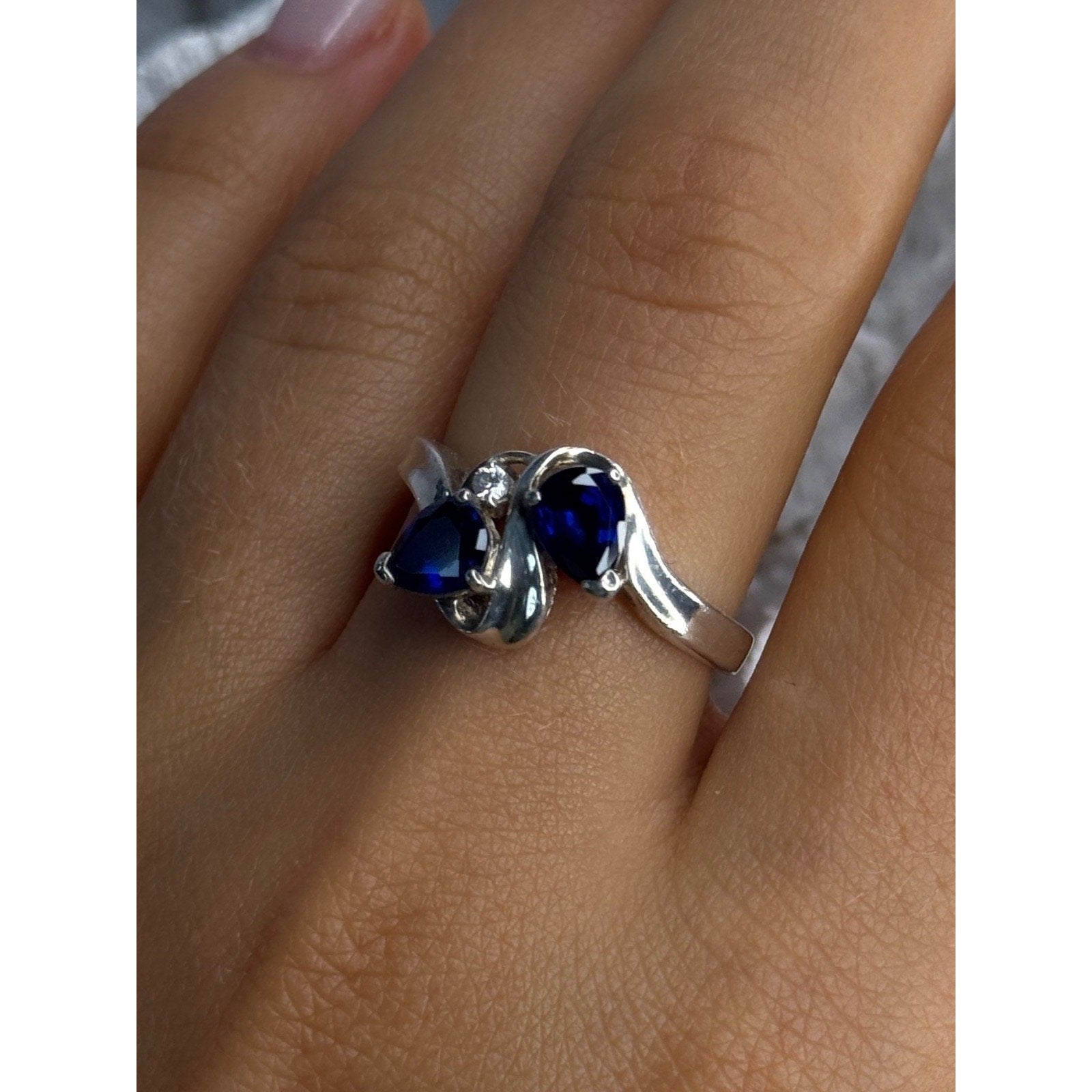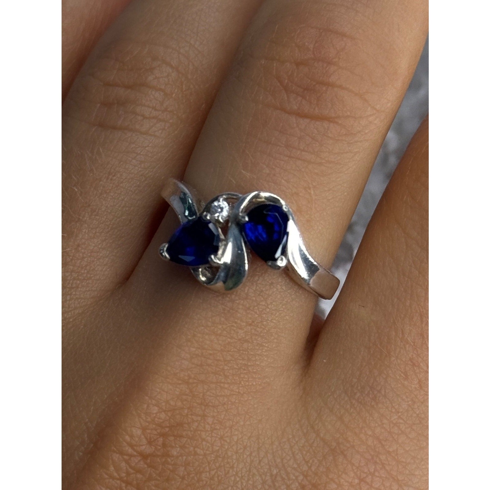 925 Sterling Silver Sapphire & Cz Ring Size 9