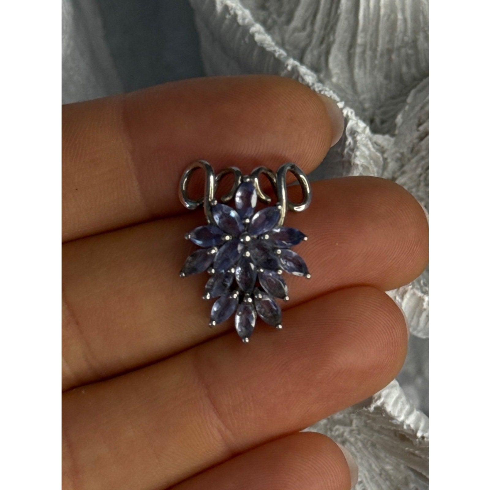 925 STERLING SILVER TANZANITE FLOWER PENDANT LENGTH 0.80 INCH