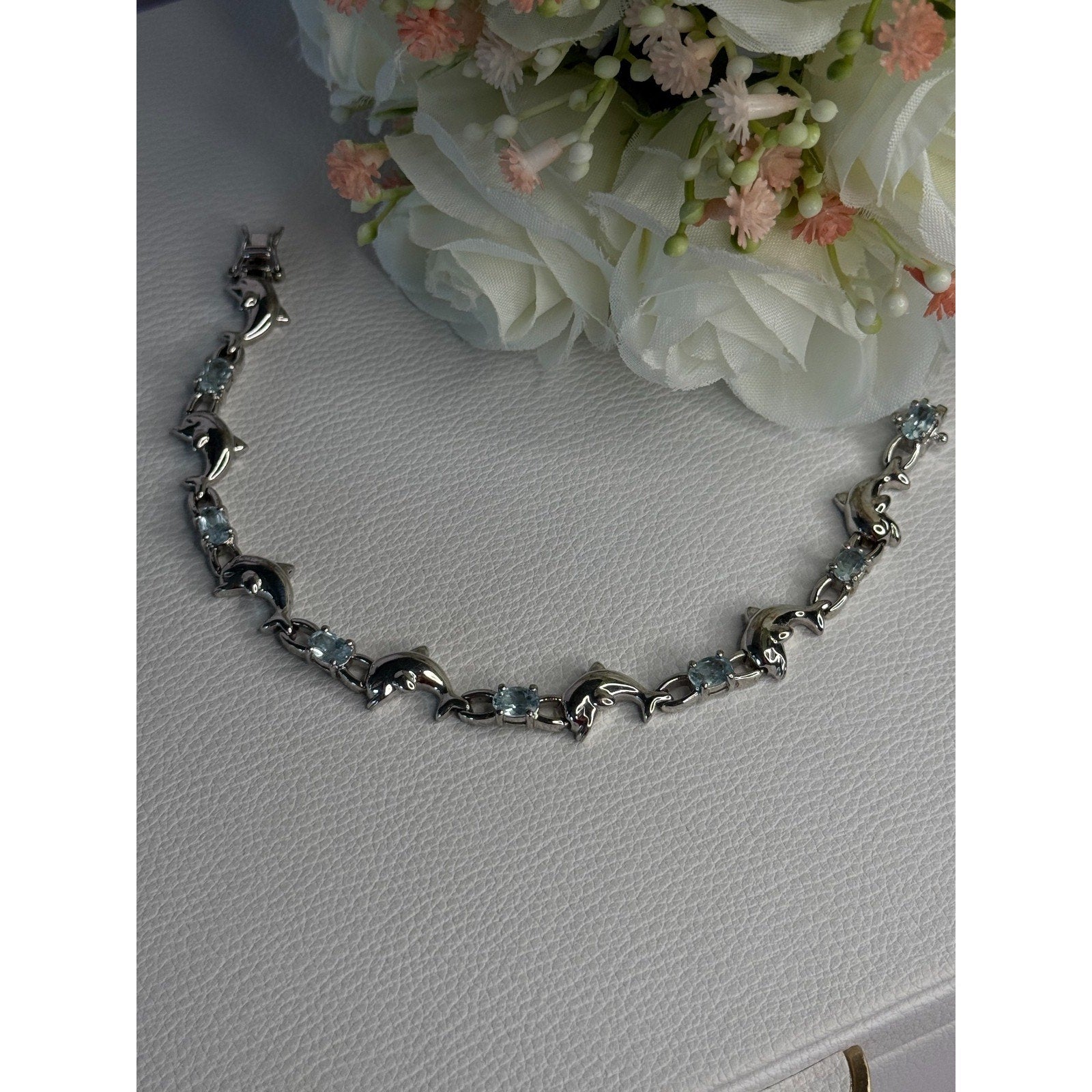 925 STERLING SILVER TOPAZ DOLPHIN BRACELET LENGTH 7.5