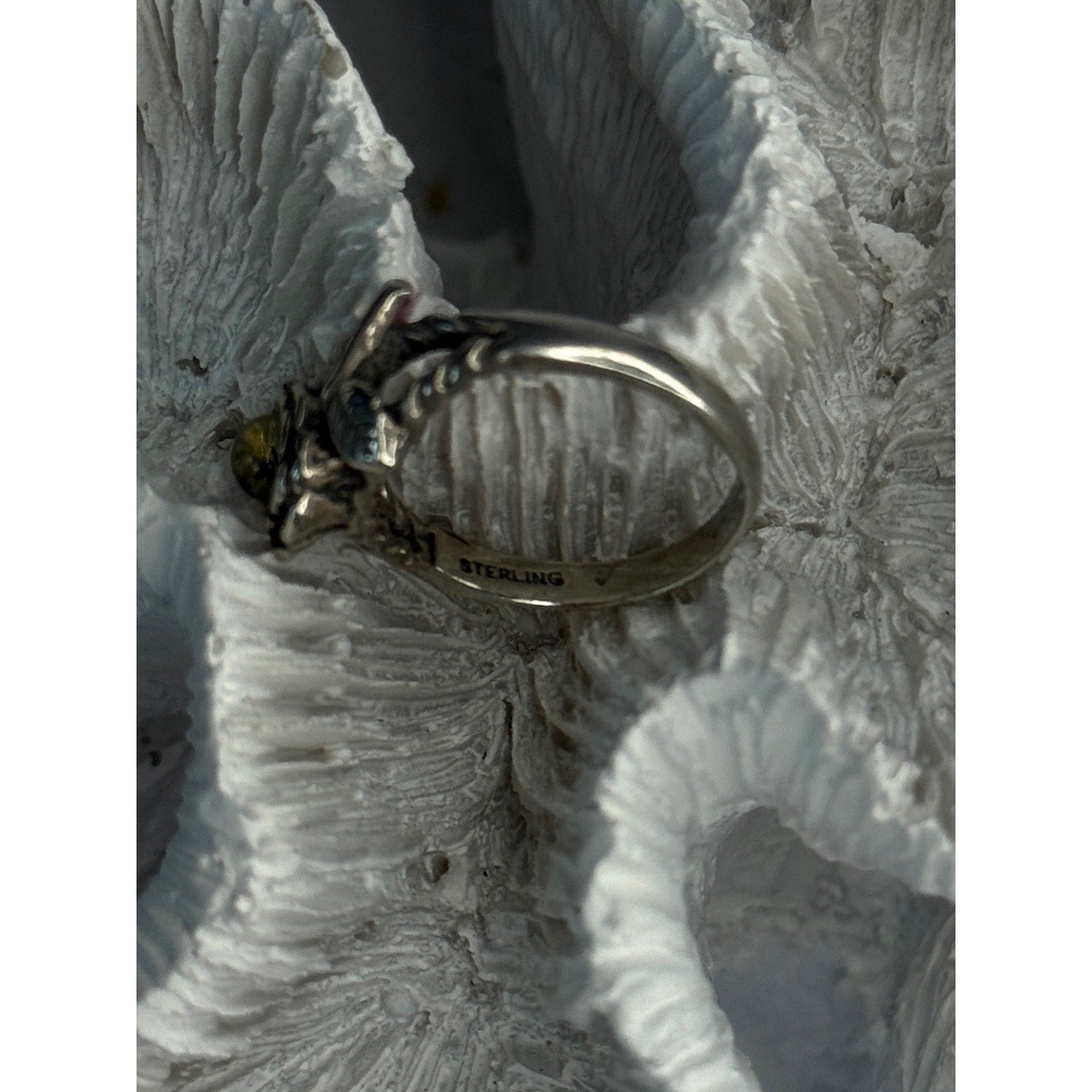 925 STERLING SILVER WATERMELON TOURMALINE FLOWER RING SIZE 6