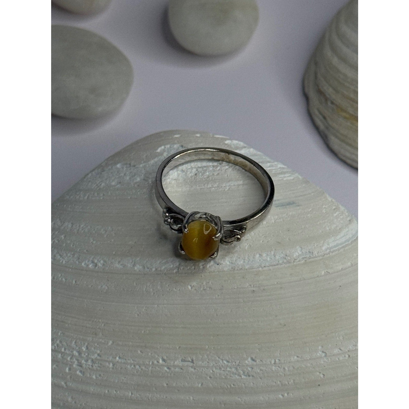 925 STERLING SILVER YELLOW JADE RING SIZE 7