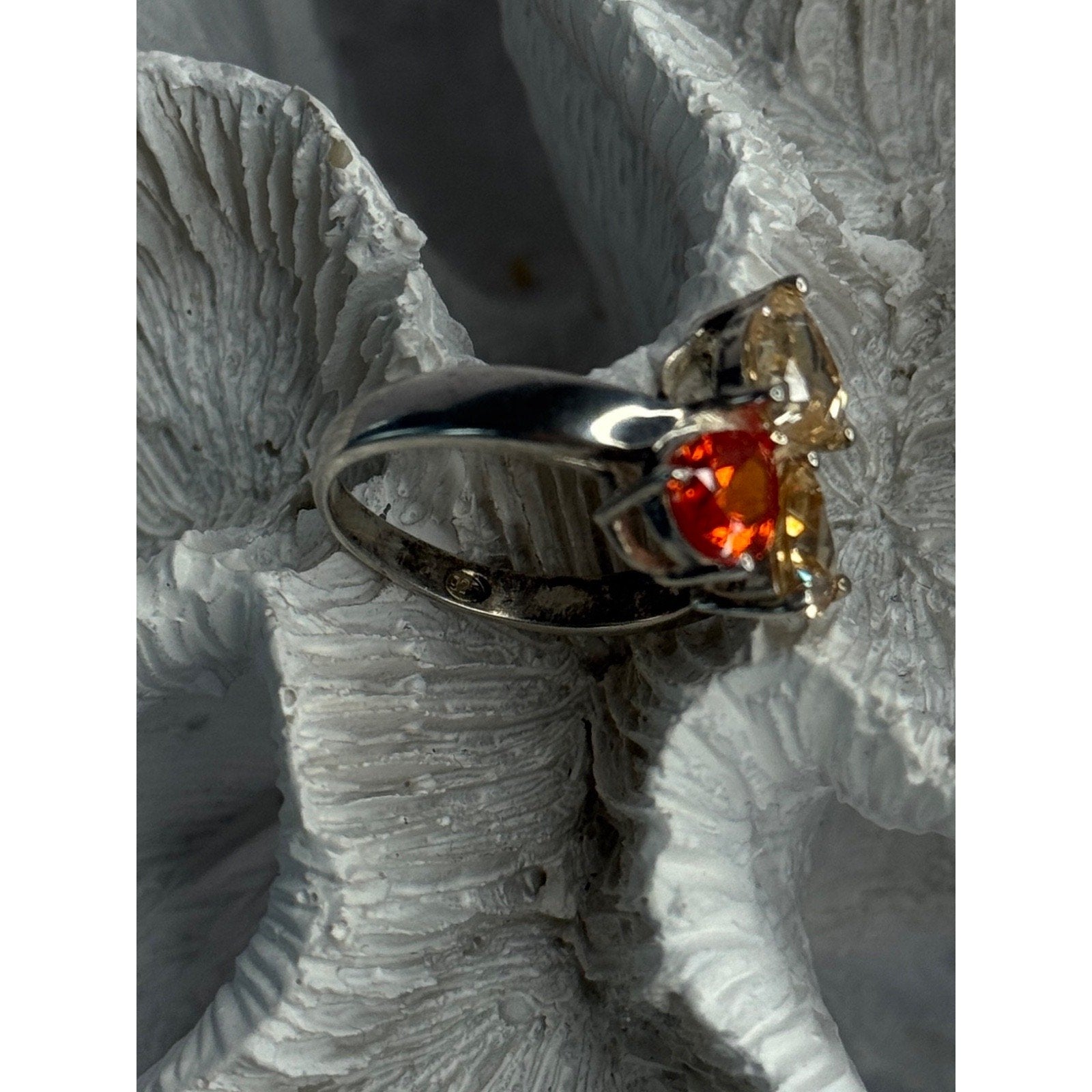 925 Sterling Silver Yellow & Orange Spinel Ring Size 8