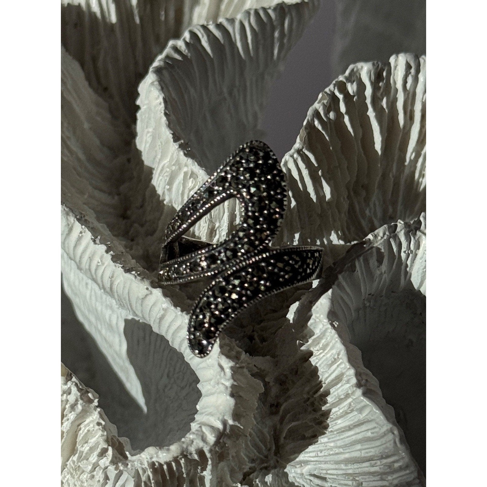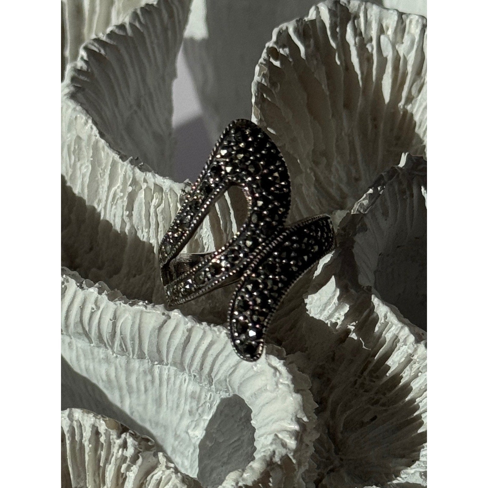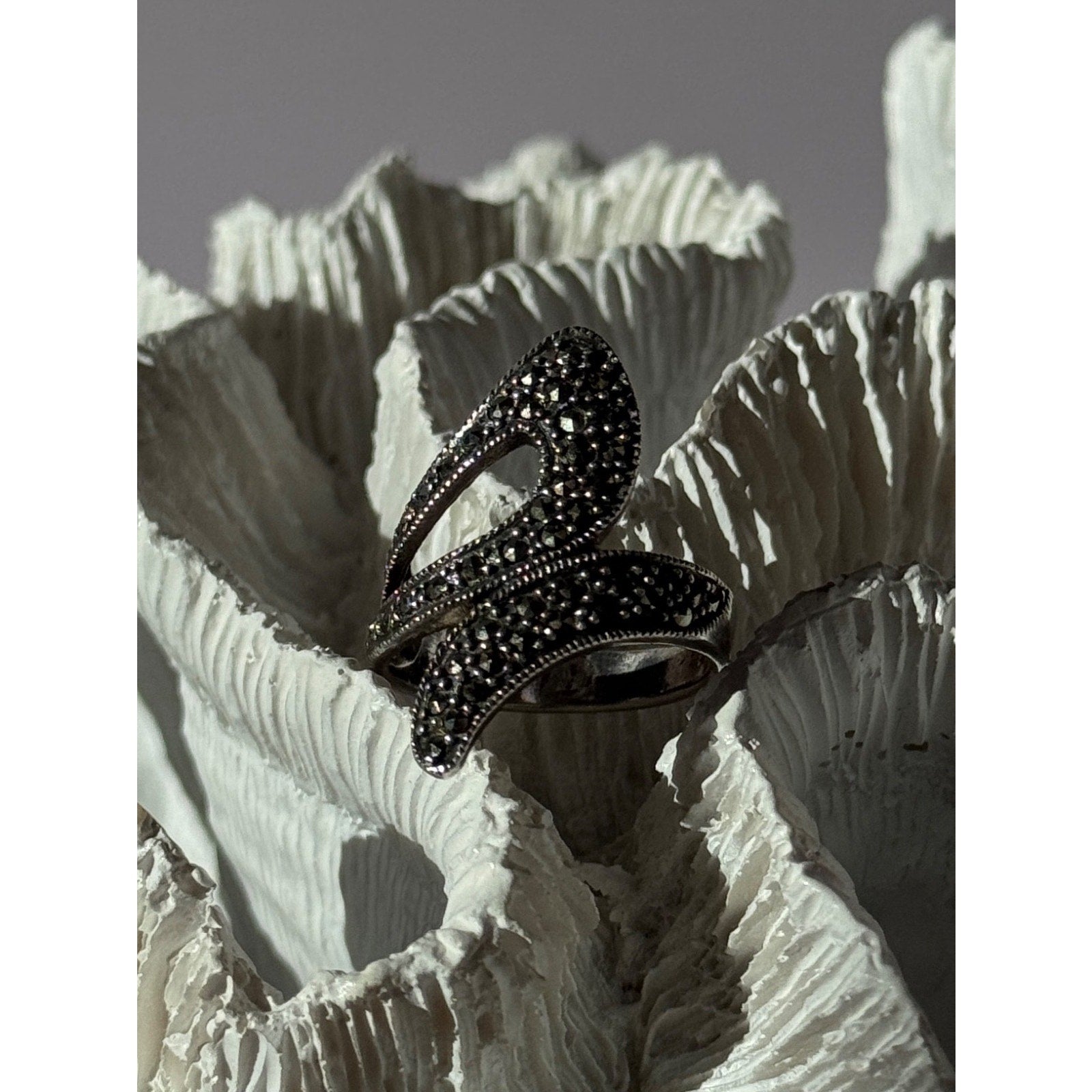 Beautiful Design 925 Sterling Silver Marcasite Ring Size 7.5