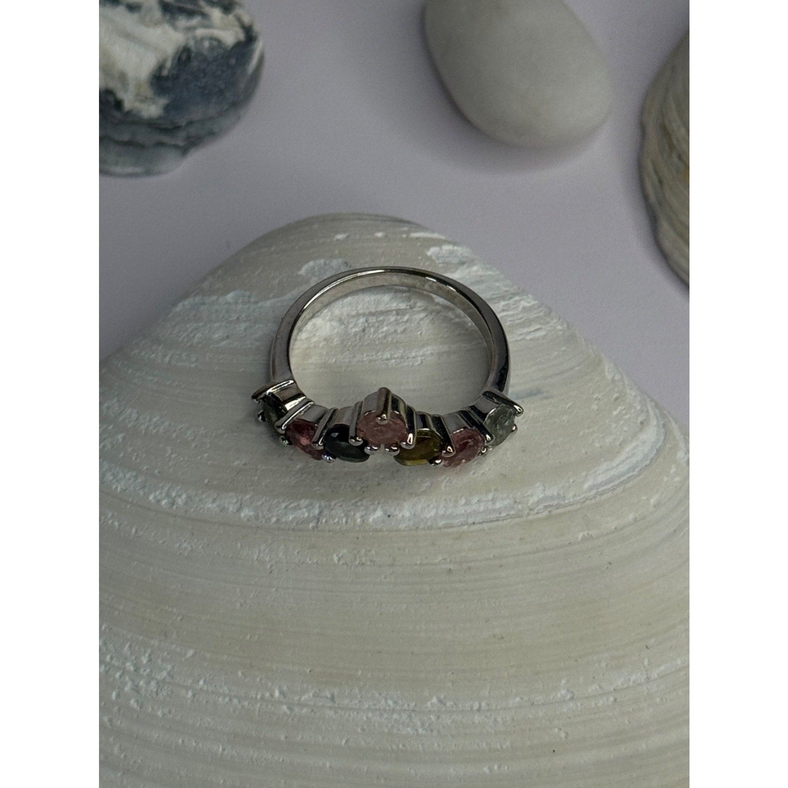 Beautiful Design 925 Sterling Silver Multi Color Spinel Ring Size 8