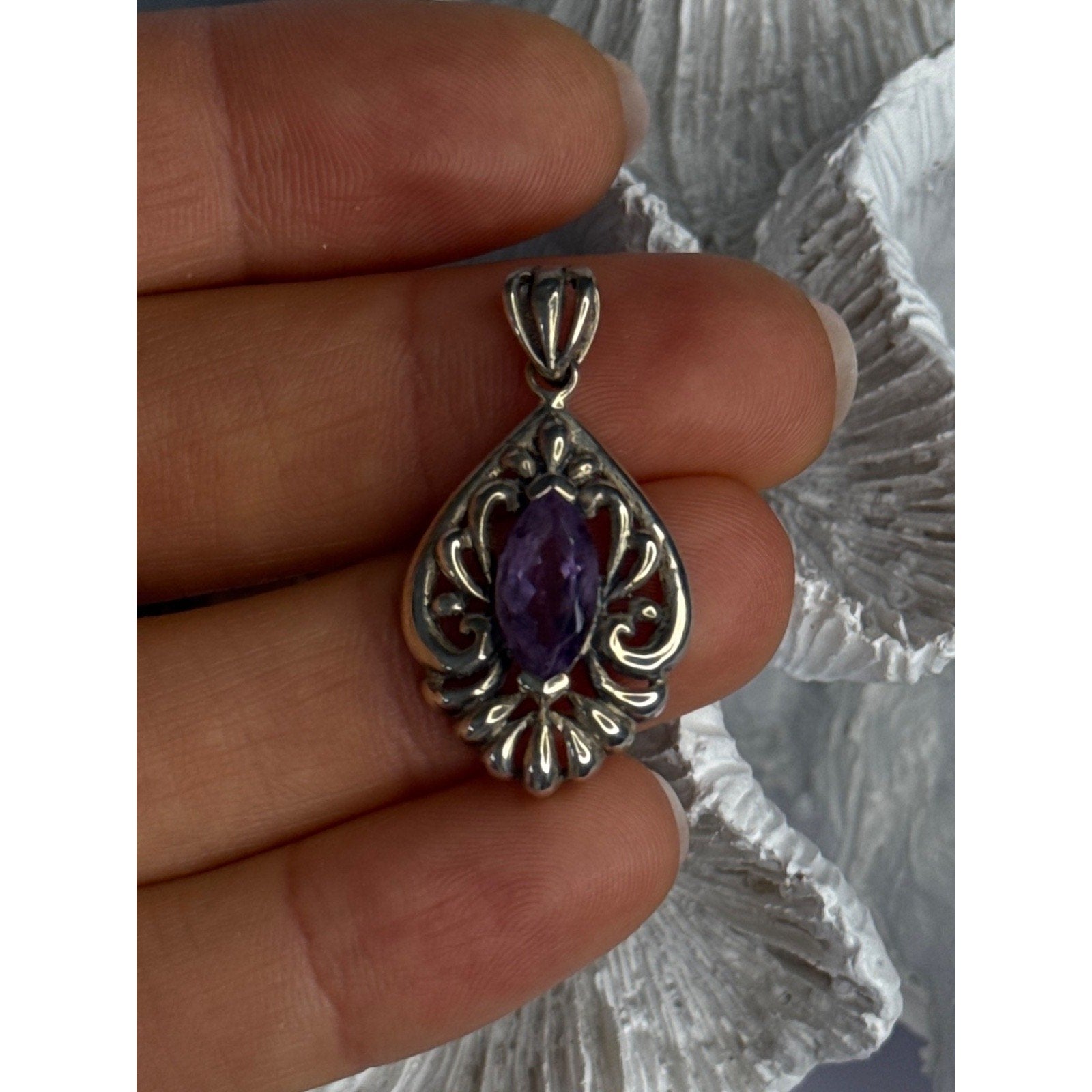 CLASSY 925 STERLING SILVER AMETHYST PENDANT LENGTH 1.20 INCH