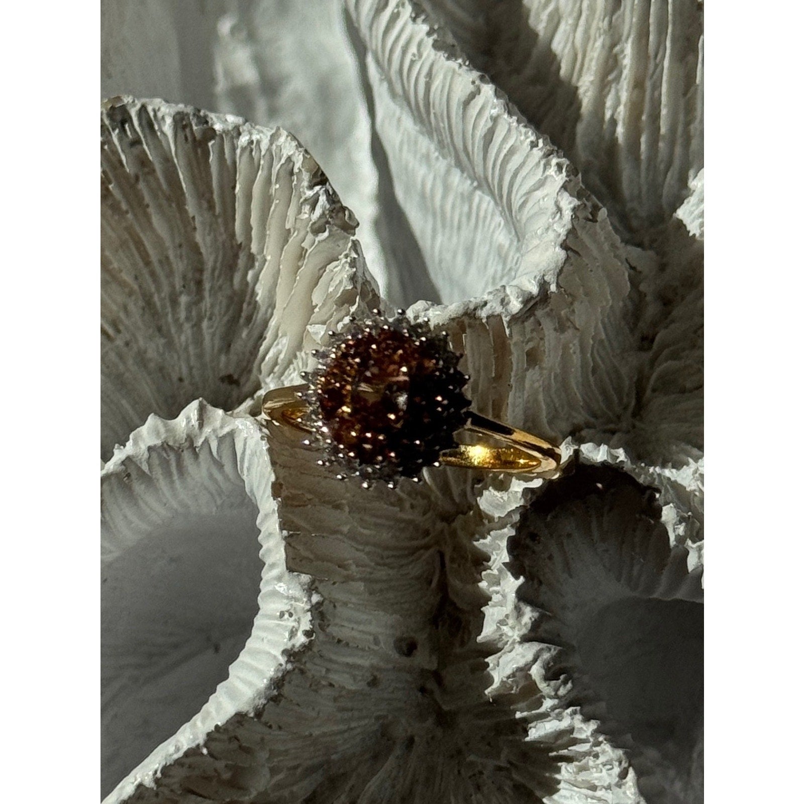 D'JOY 925 STERLING SILVER GOLD PLATED BROWN & WHITE SPINEL RING SIZE 9