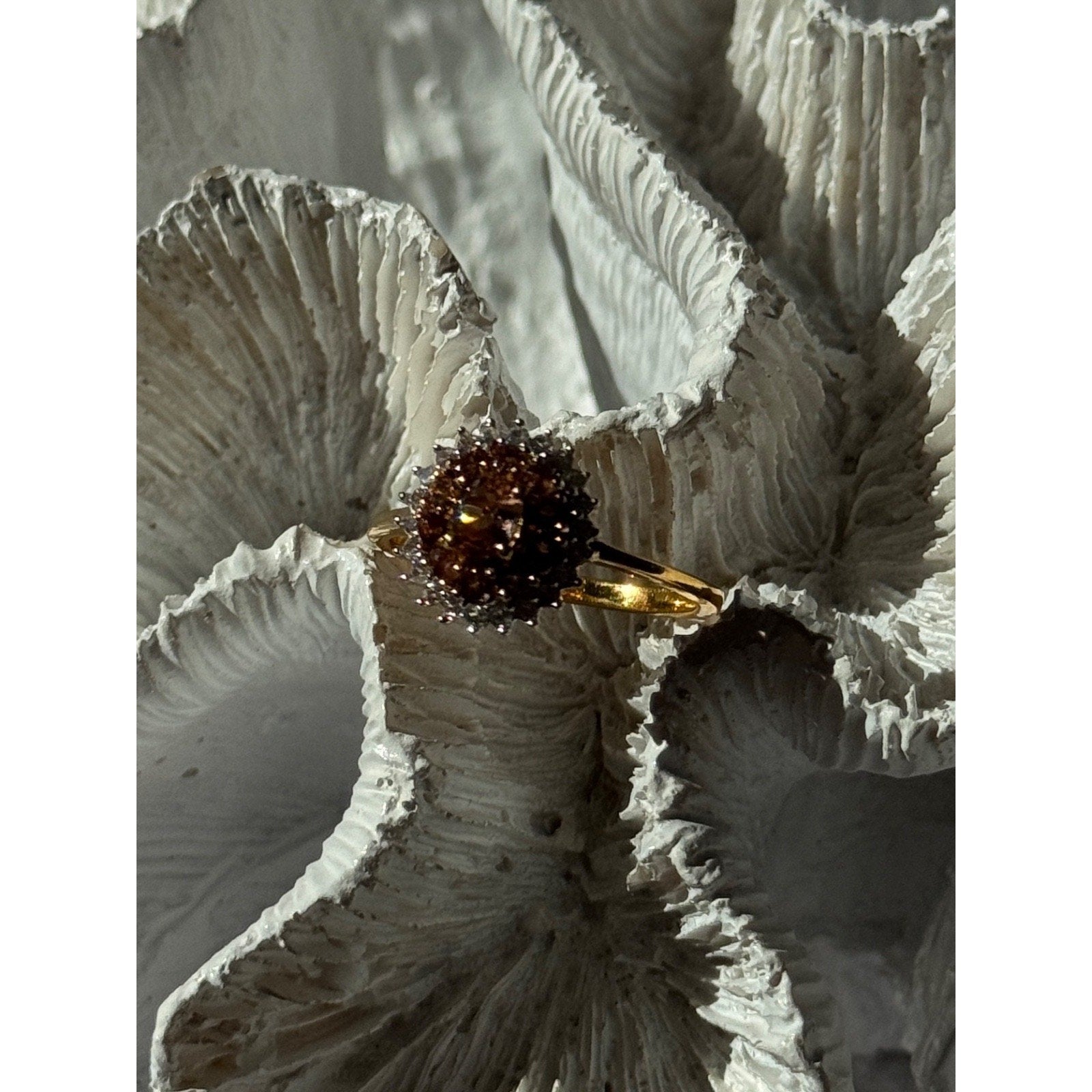 D'Joy 925 Sterling Silver Gold Plated Brown & White Spinel Ring Size 9