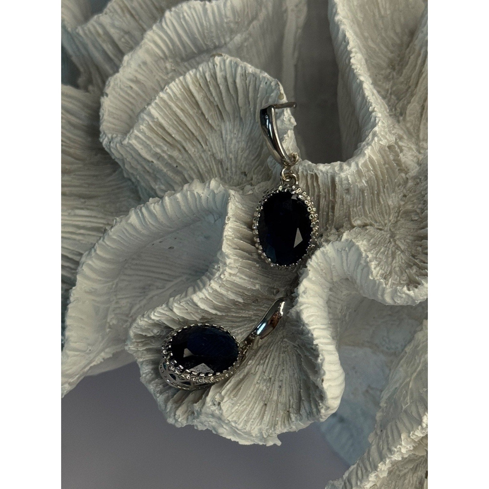 ELEGANT 925 STERLING SILVER SAPPHIRE EARRINGS LENGTH 1.20 INCH