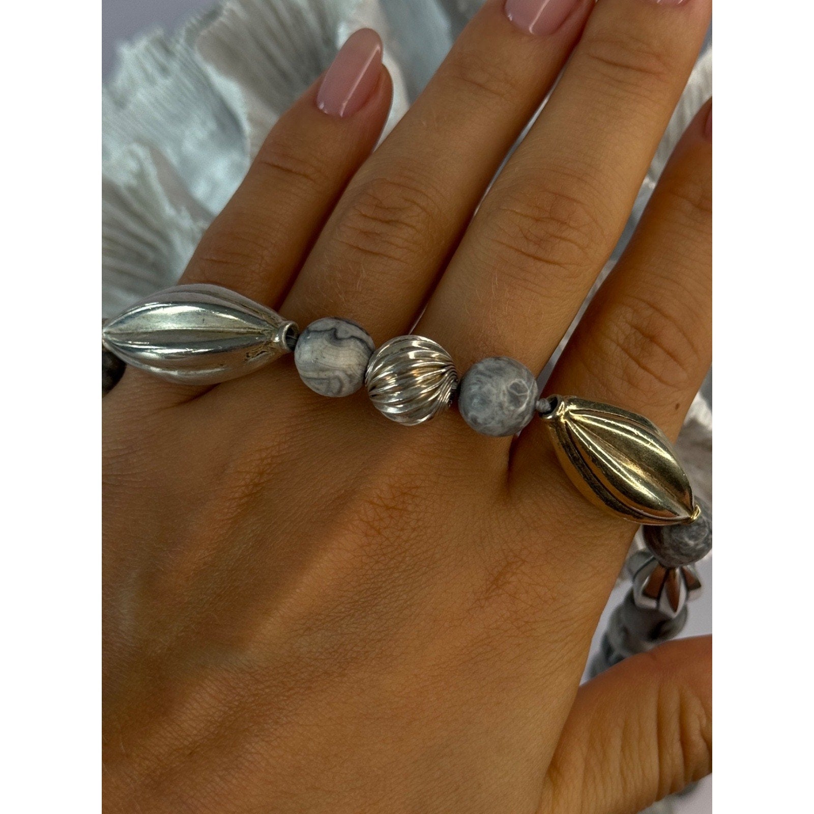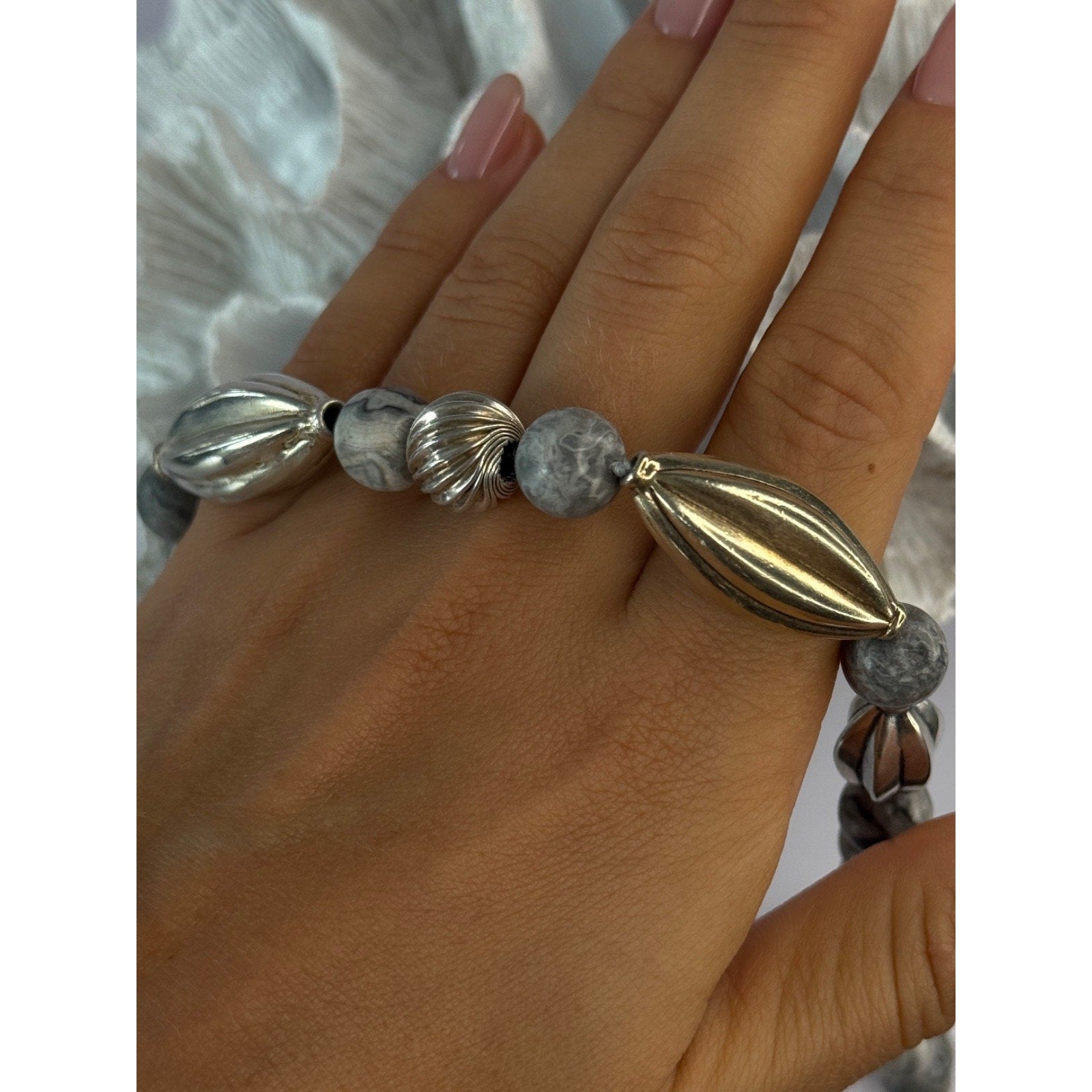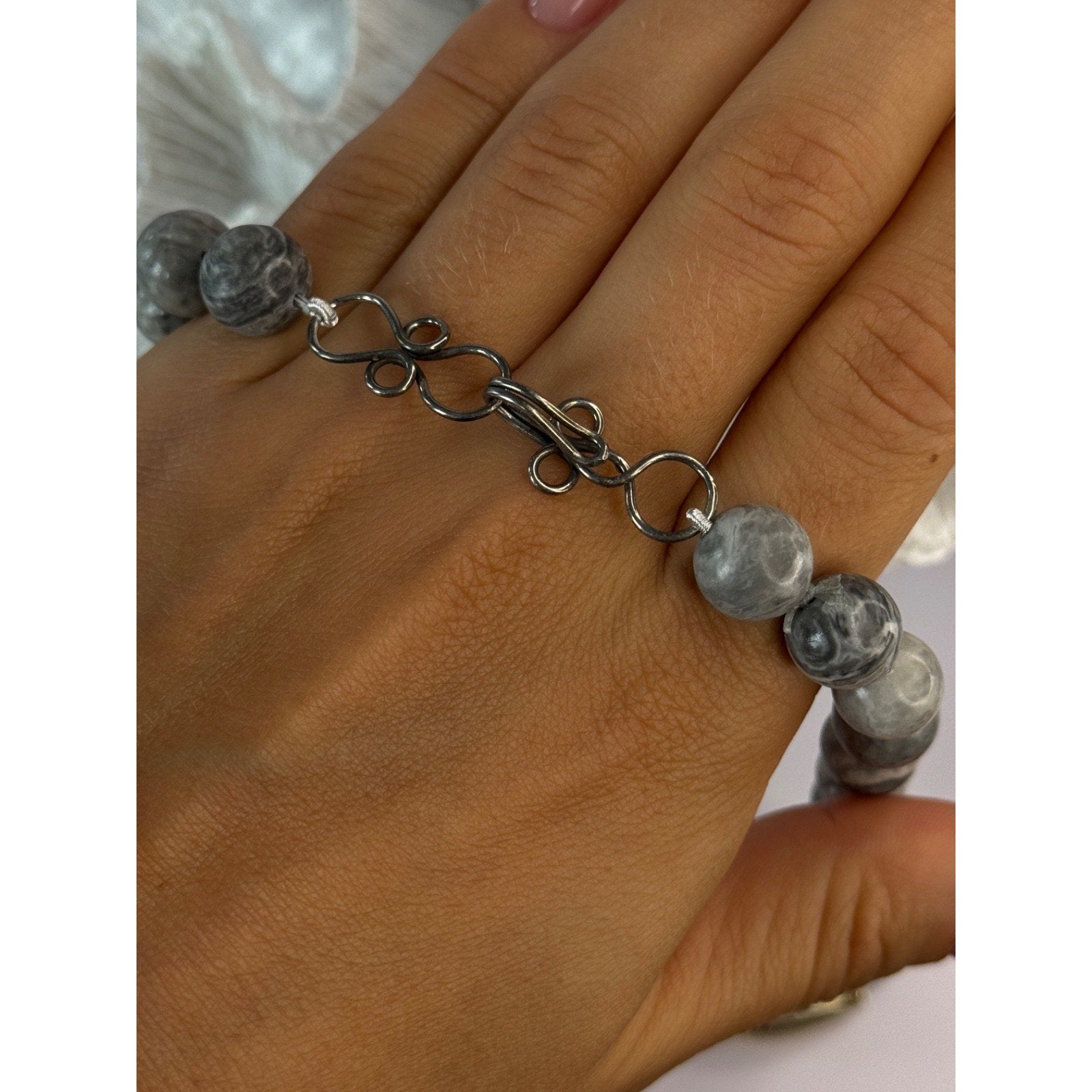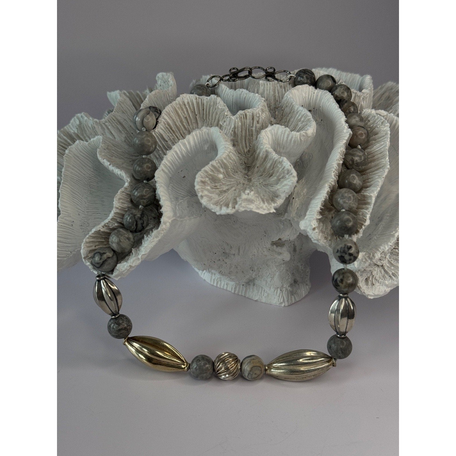 ELEGANT DESIGN 925 STERLING SILVER JASPER NECKLACE LENGTH 18.5
