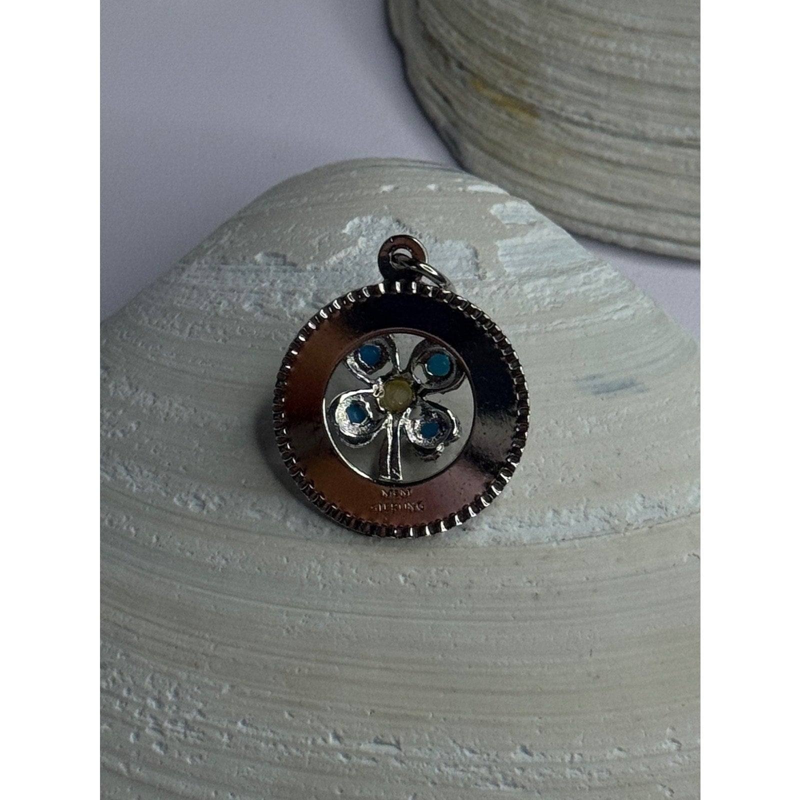 M&M 925 STERLING SILVER GOOD LUCK PEARL & LARIMAR PENDANT LENGTH 1.10 INCH