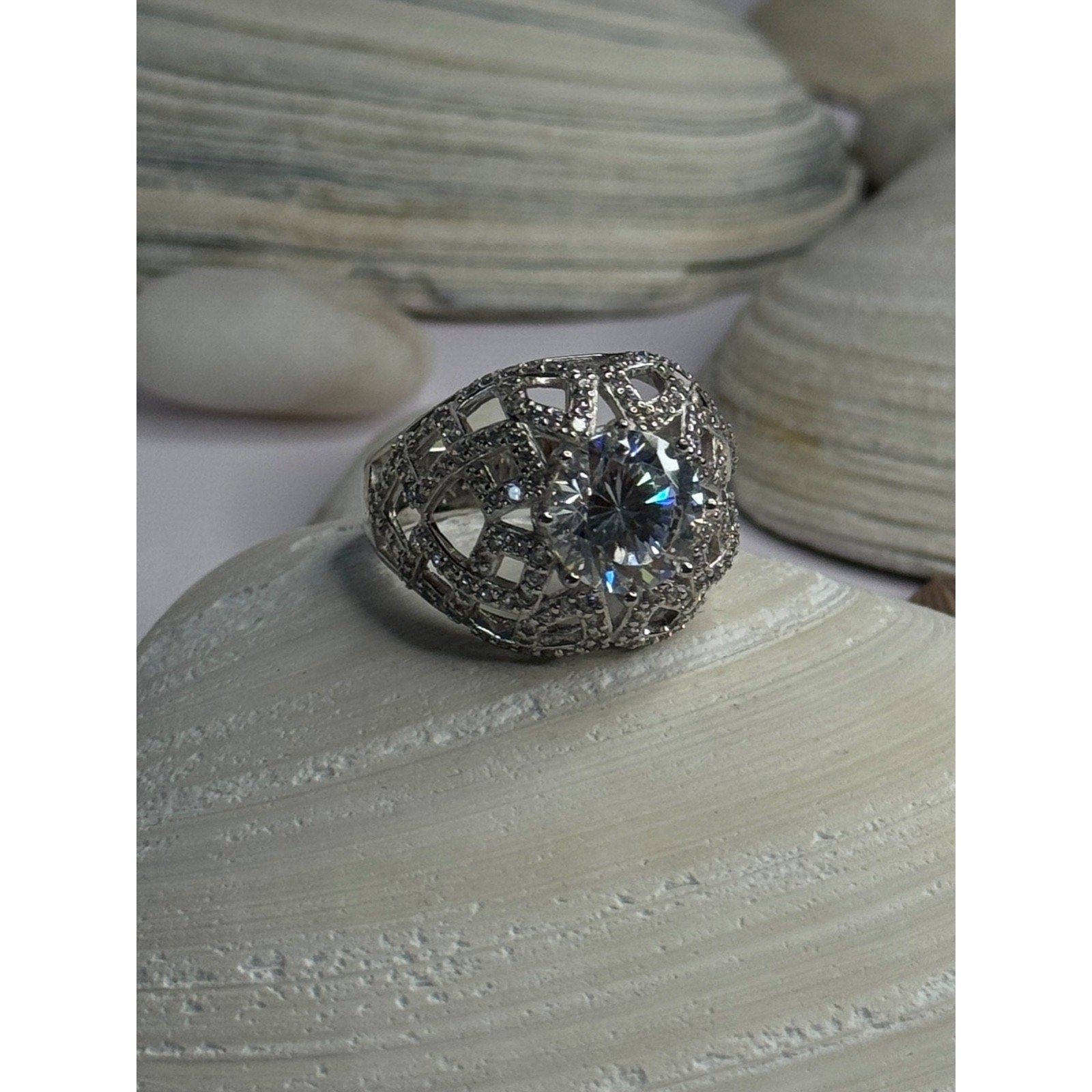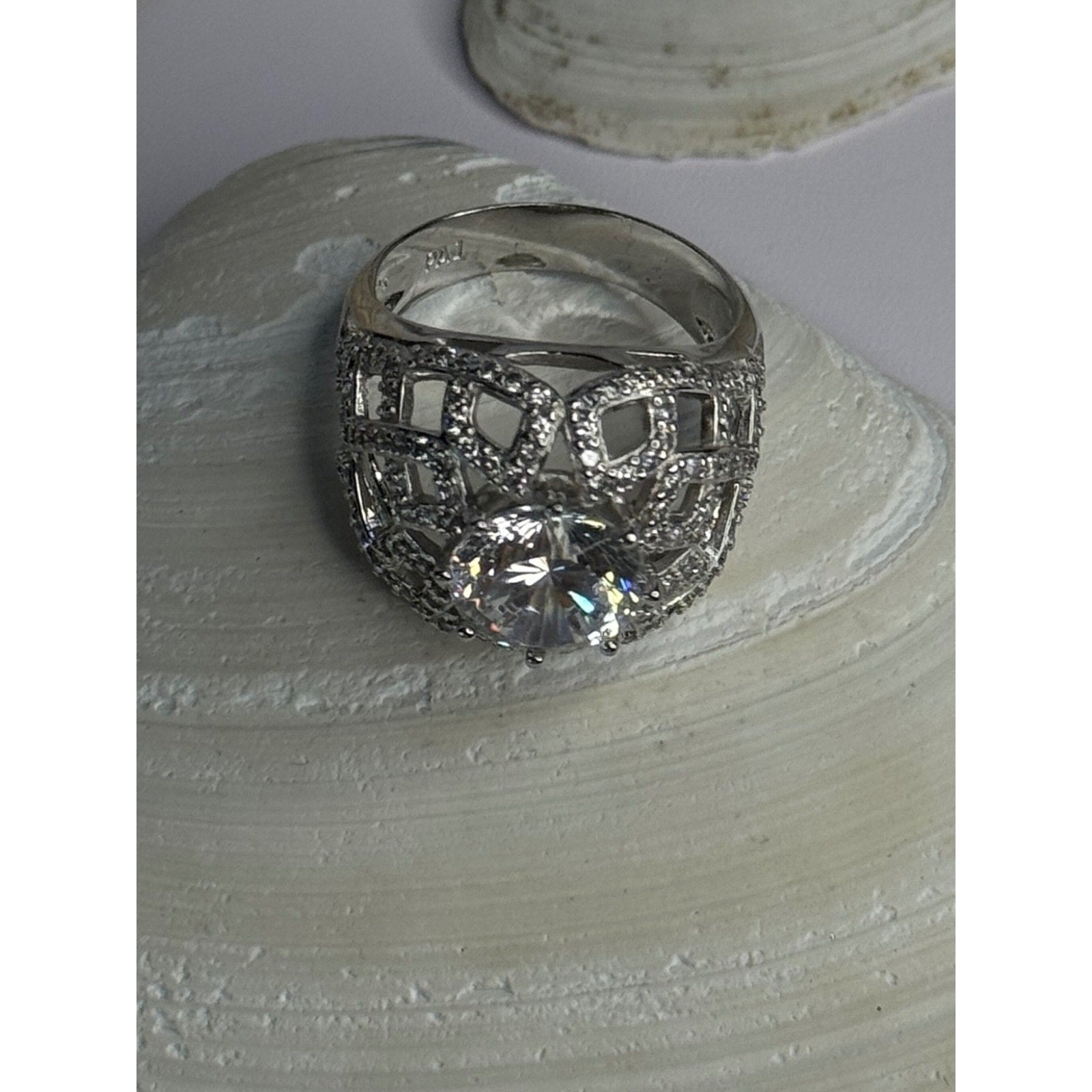 SHINY 925 STERLING SILVER CZ RING SIZE 9