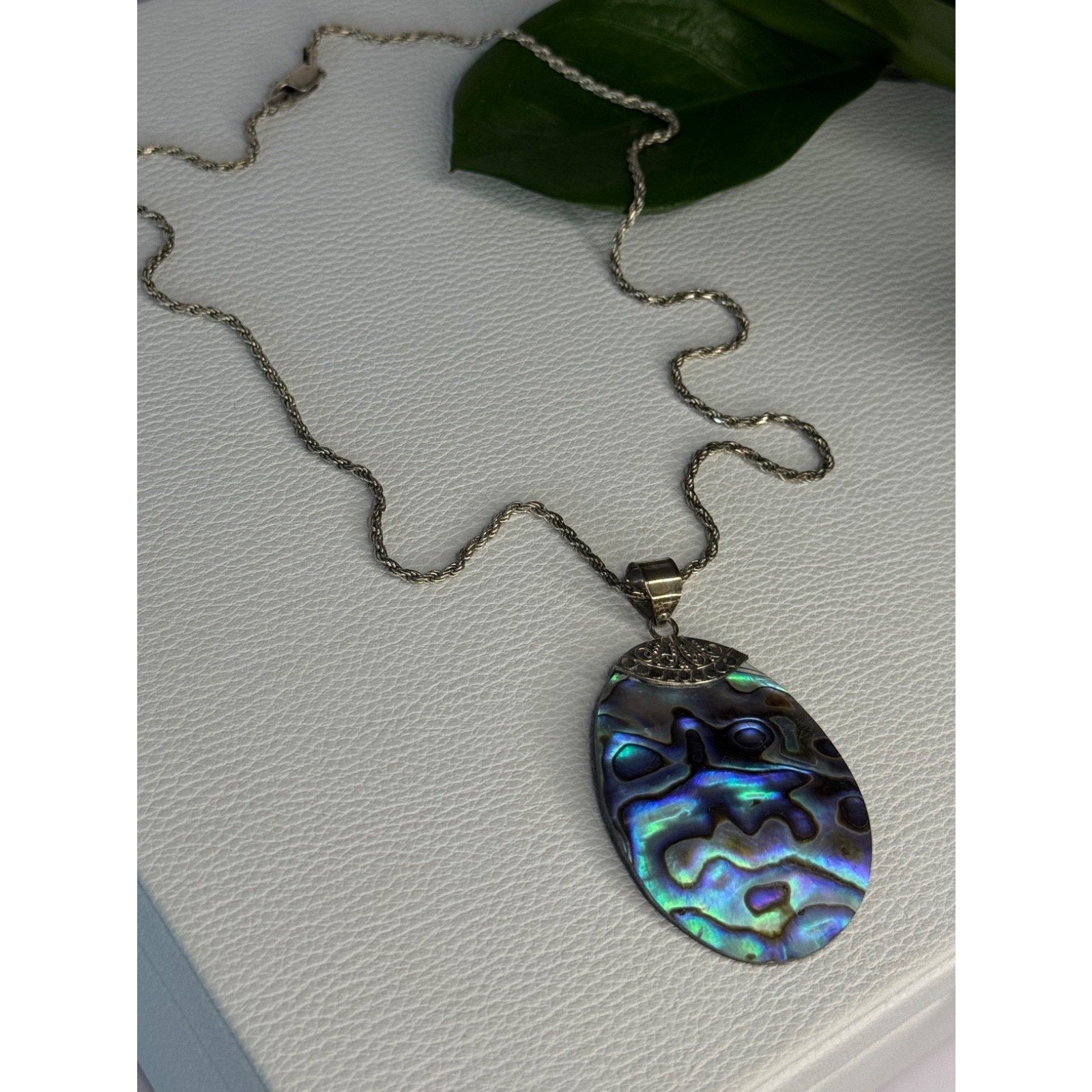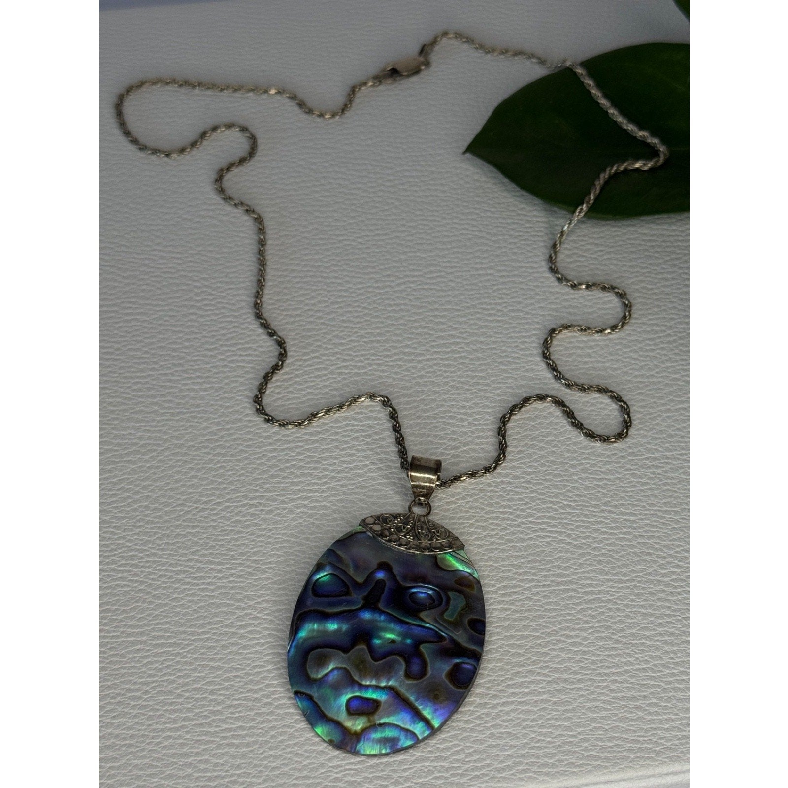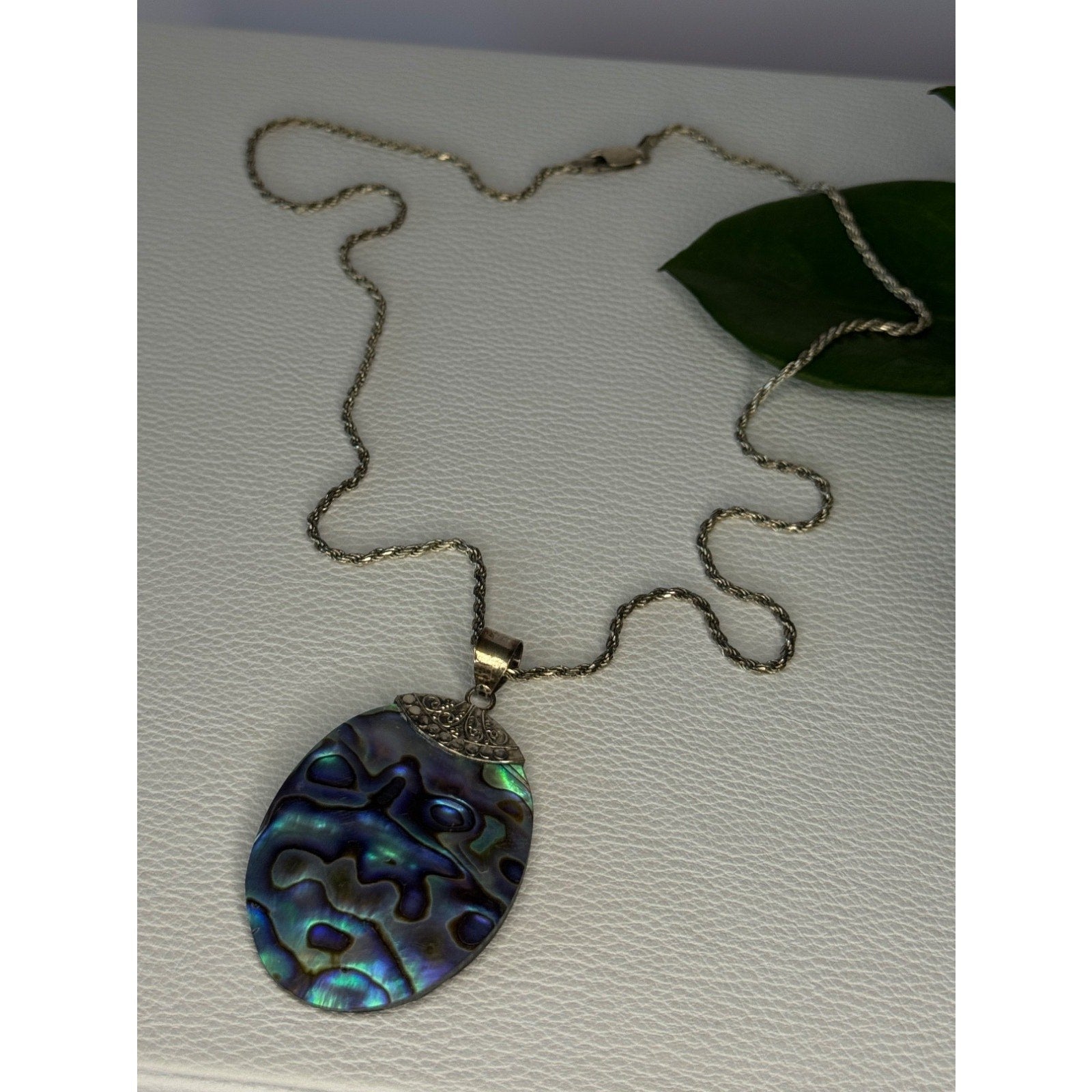 Vintage 925 Sterling Silver Abalone Necklace Length 20 inch