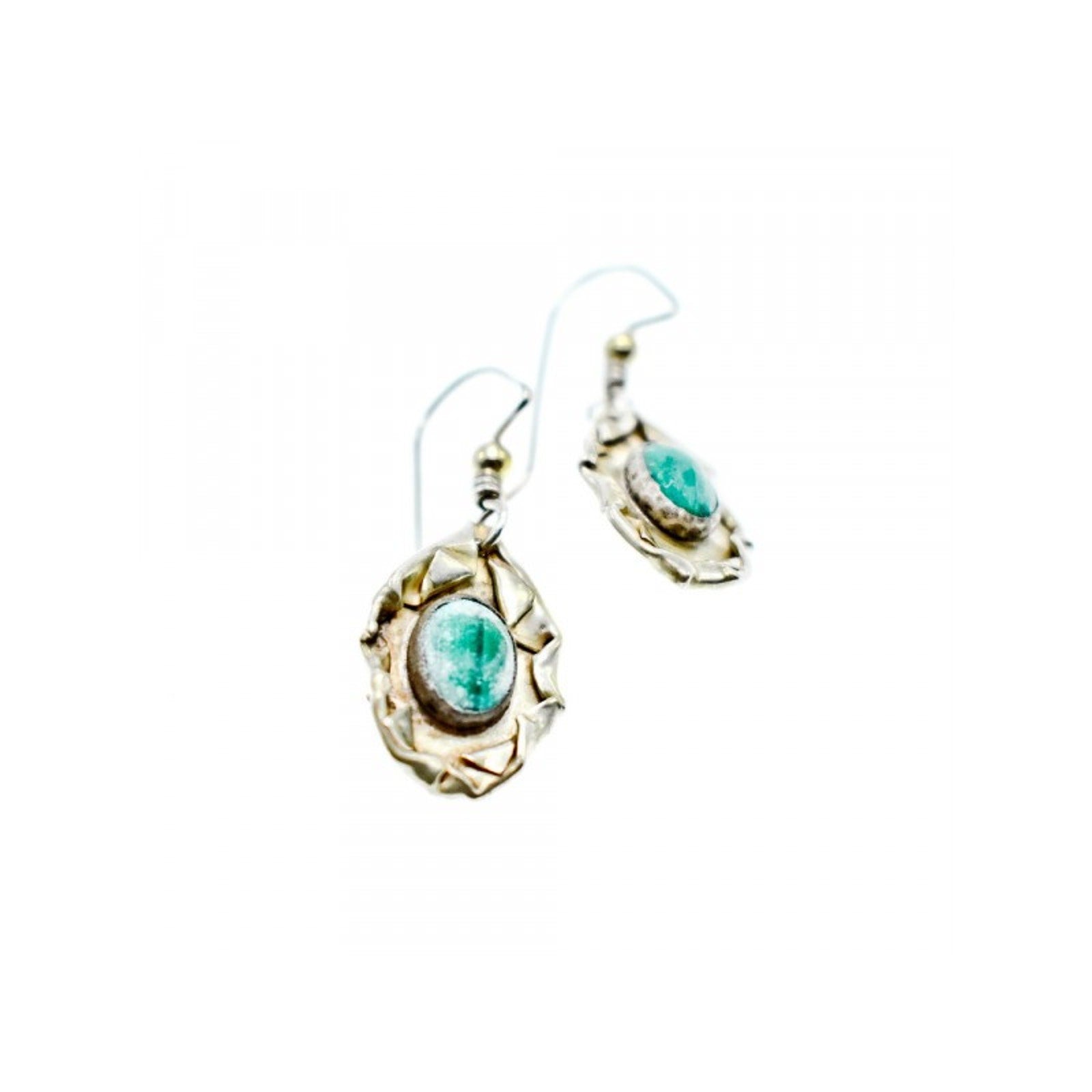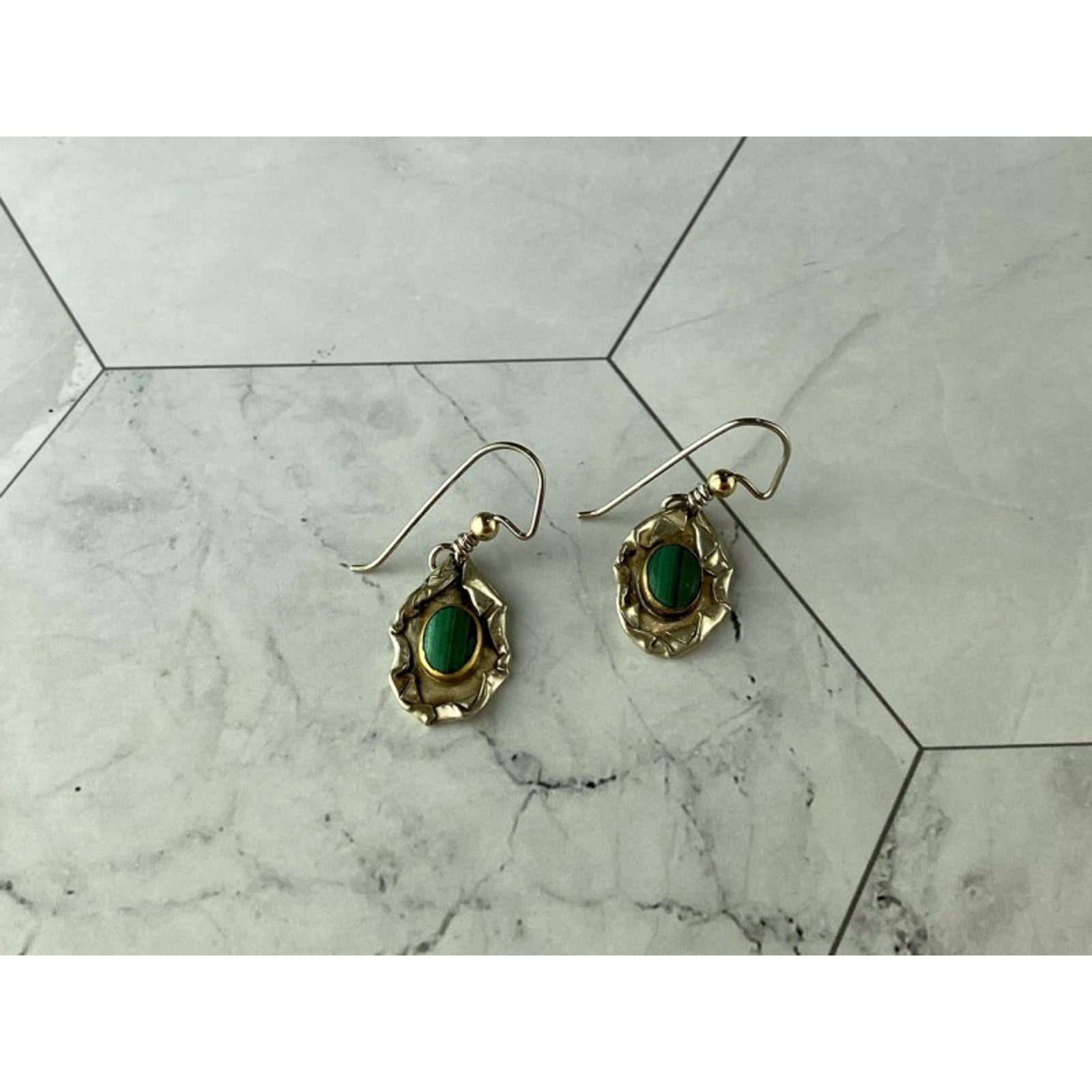VINTAGE 925 STERLING SILVER MALACHITE EARRINGS