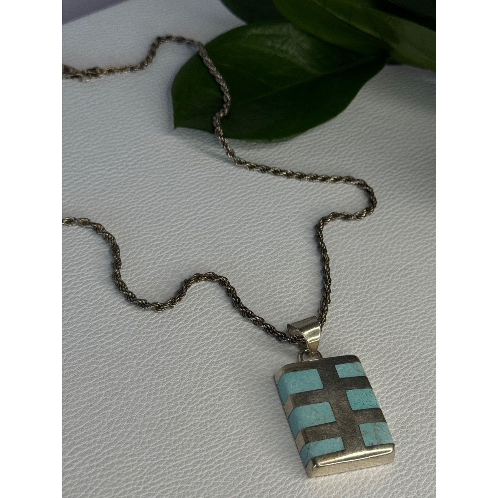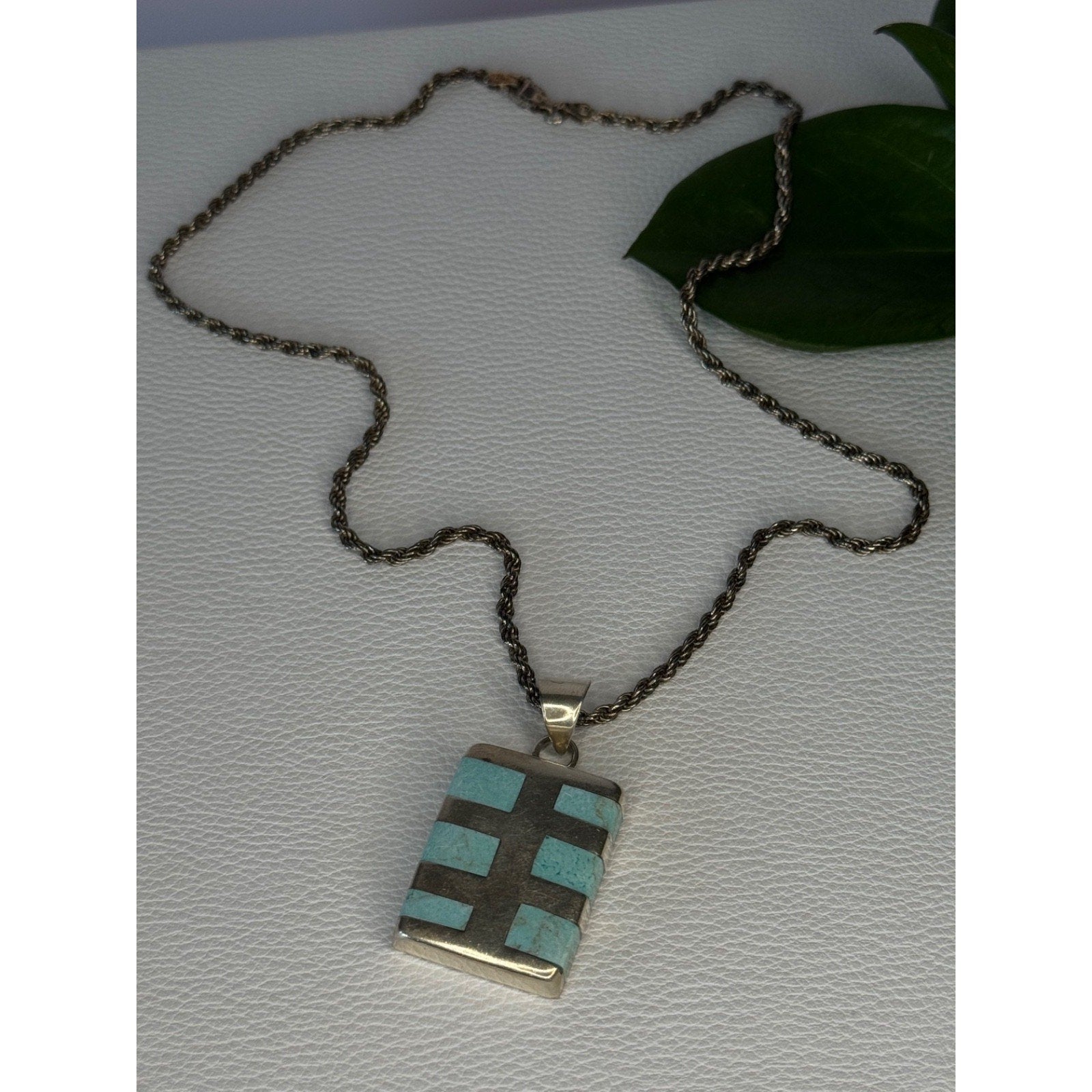 Vintage 925 Sterling Silver Turquoise Necklace Length 18 inch