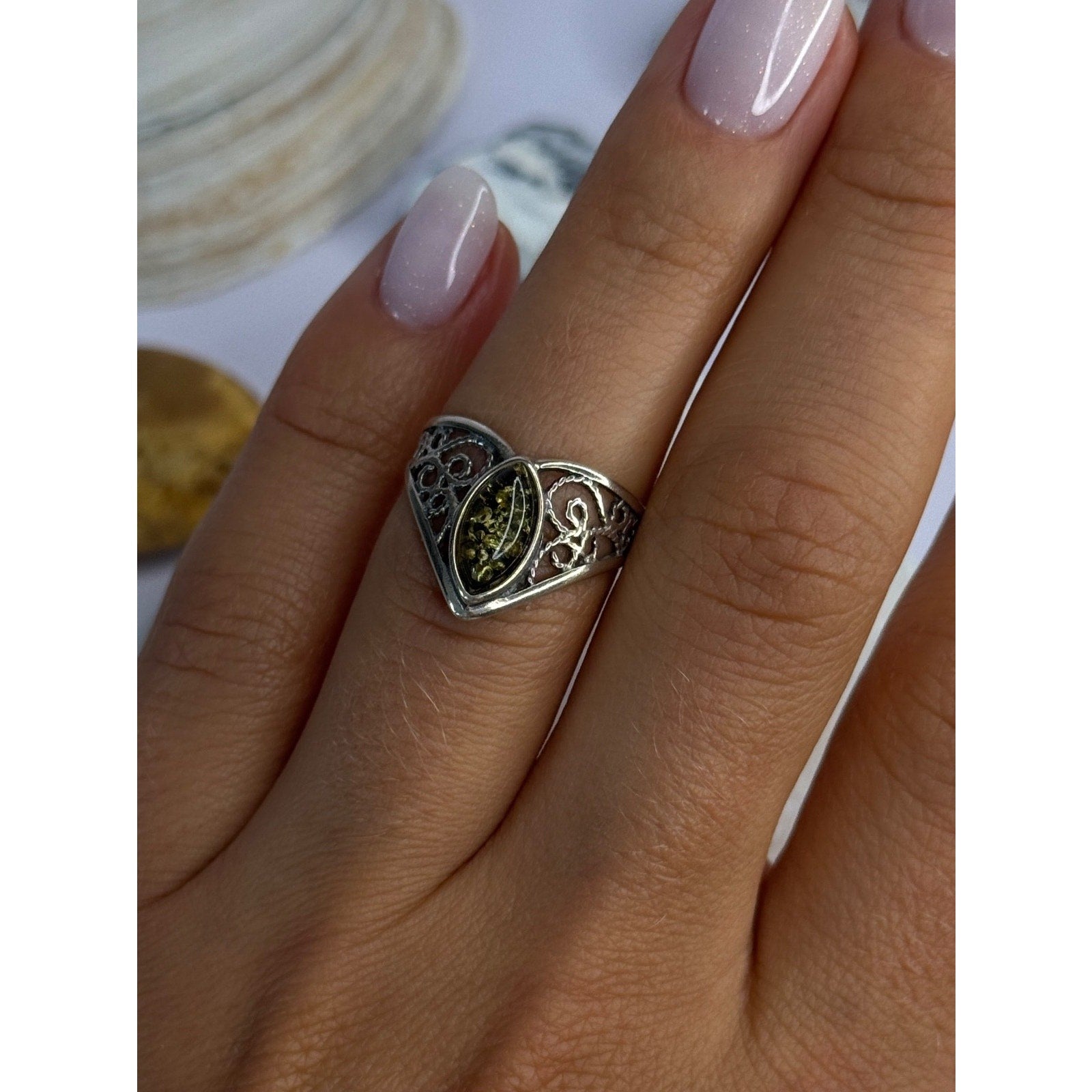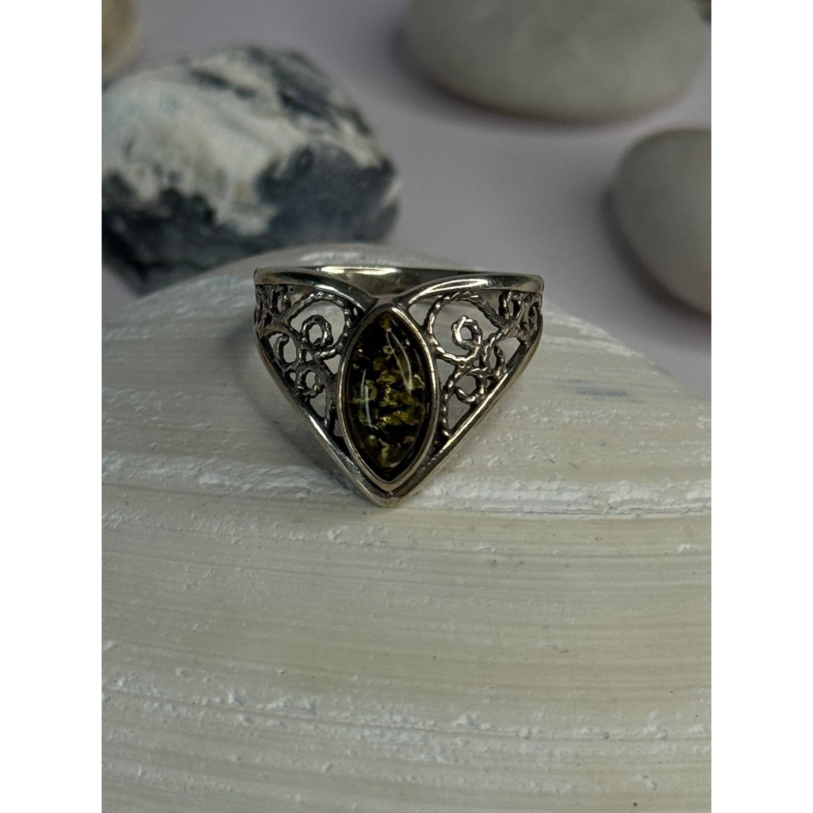Vintage Classy Design 925 Sterling Silver Amber Ring Size 6
